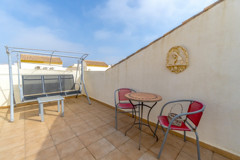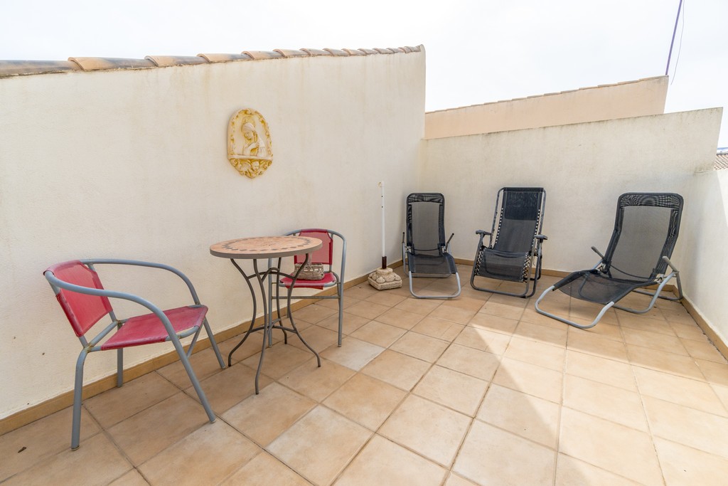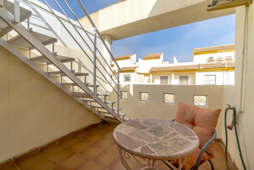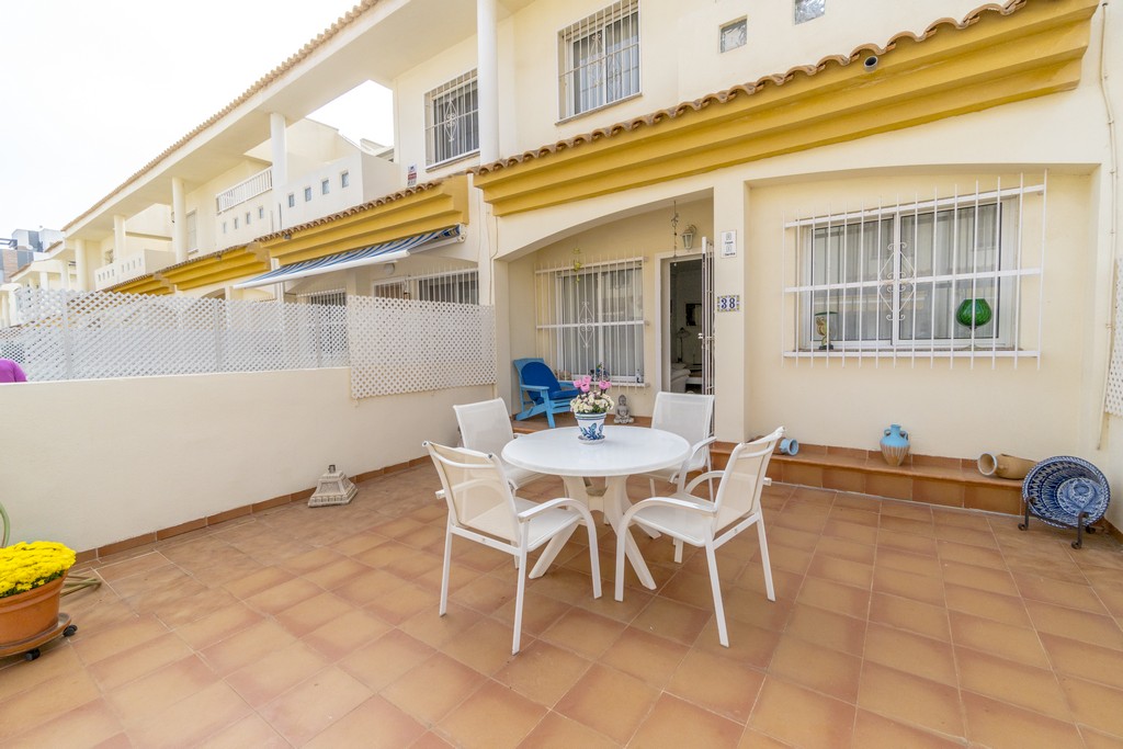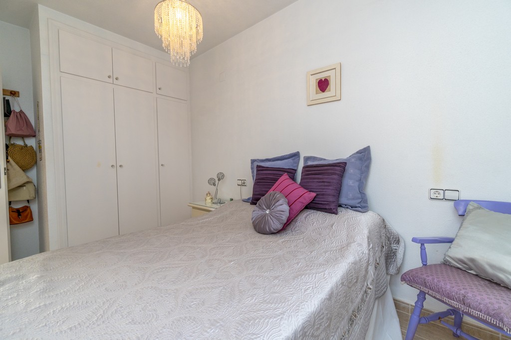 Fin duplex i Aguamarina 200 meter fra strandpromenaden. Boligen har et areal på 70 m2 og består av 2 soverom, stor stue, separat kjøkken, to komplette bad, terrasse, 21 m2 hage og 10 m2 takterrase med havutsikt. Nordøstlig orientering. Eiendommen selges møblert.