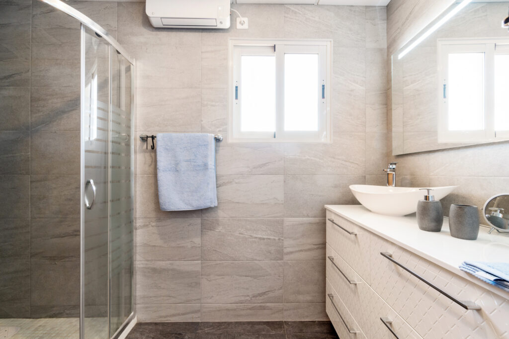 Eiendommen ligger sydvendt og har 3 soverom med innebygde garderober og 3 bad.