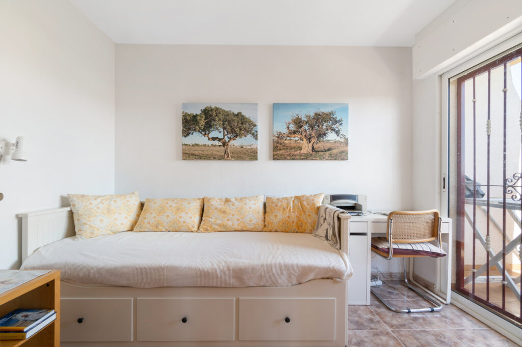 I øverste etasje har du et soverom med eget bad og terrasse med utsikt over både hav og grøntområder.