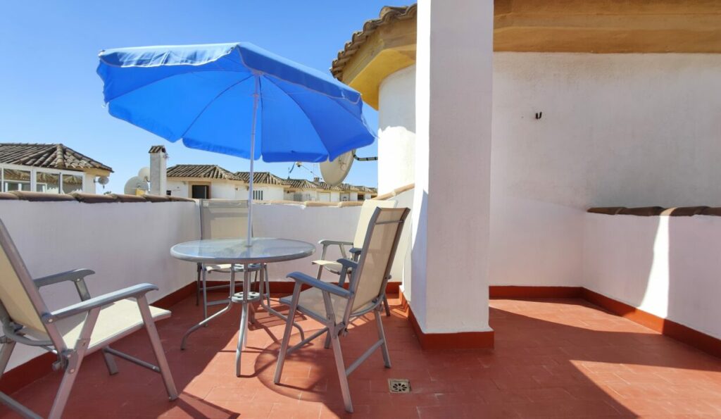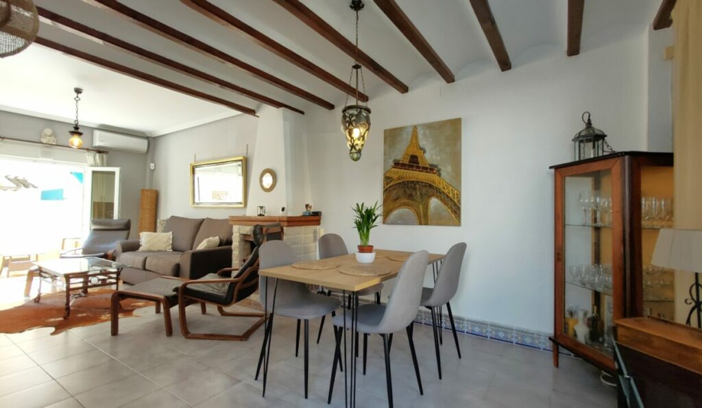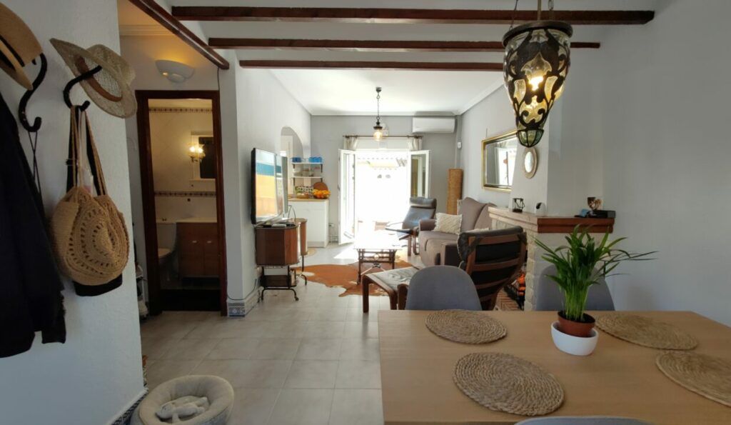 Vi er glade for å presentere dette sjarmerende, delvis renoverte 2-roms rekkehuset med hage foran og bak på Playa Flamenca.