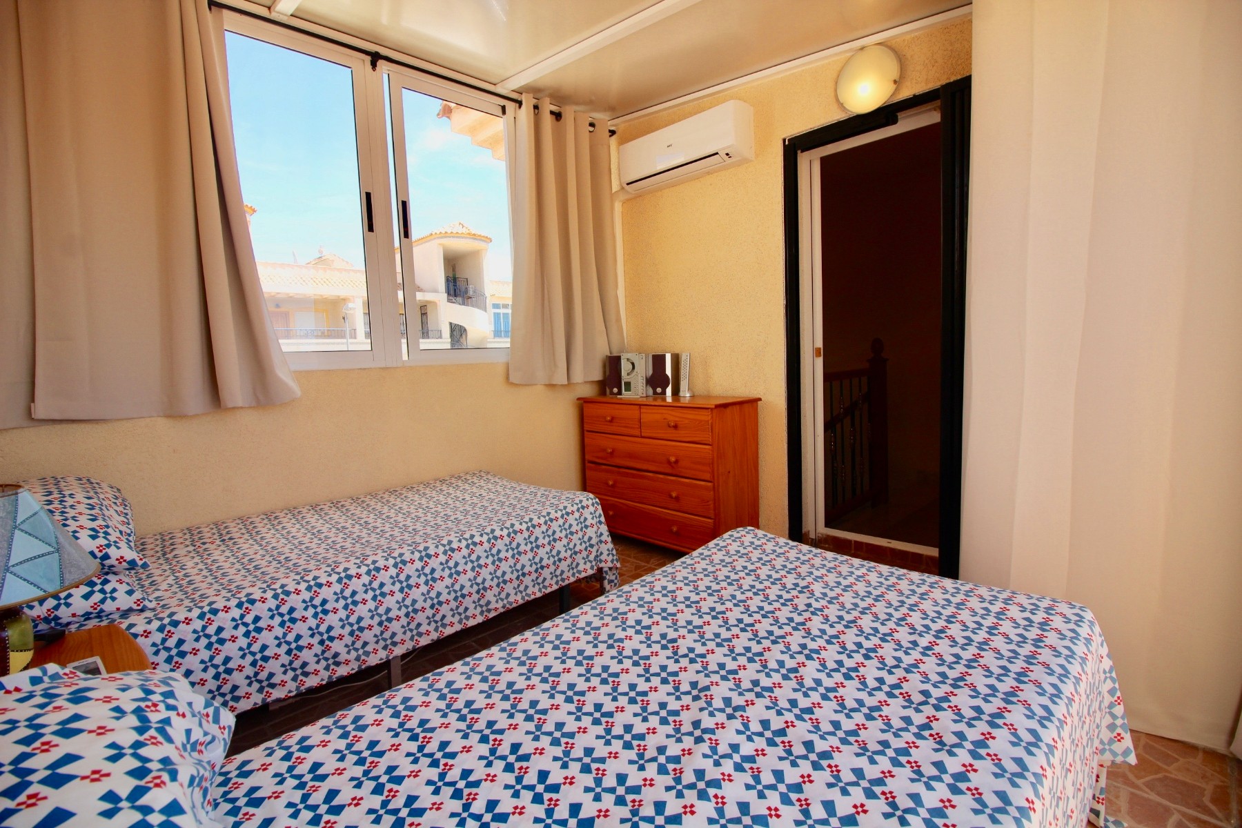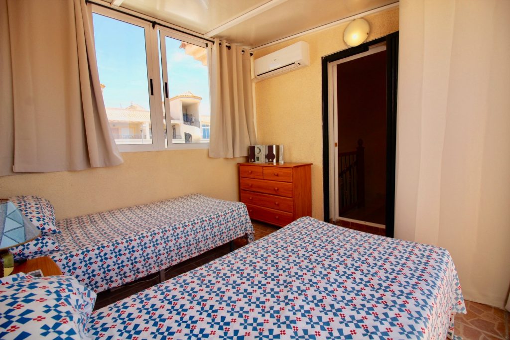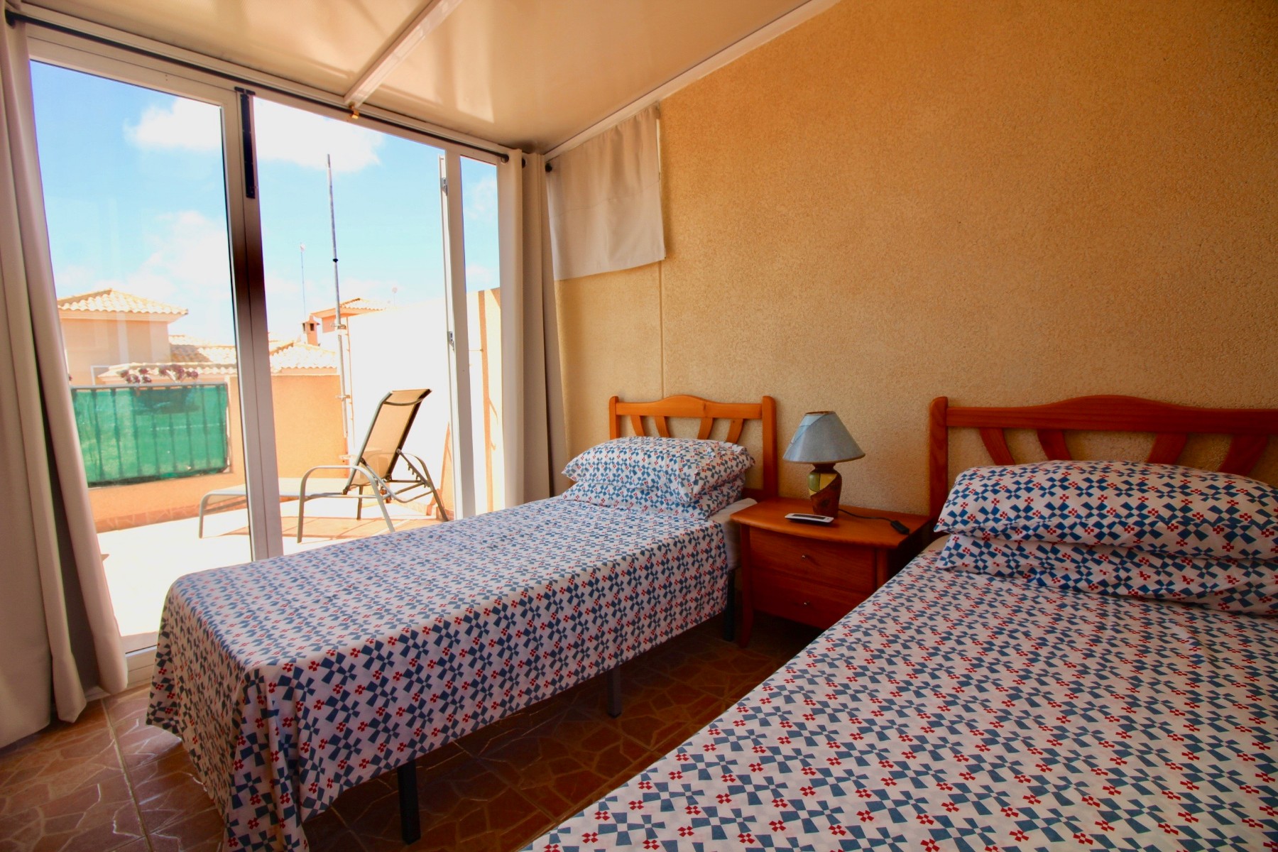 Det tredje soverommet er i toppetasjen og har to enkeltsenger, også denne utgangen til en fantastisk takterrasse som hvor du har vakker utsikt over hustakene ned til Middelhavet.