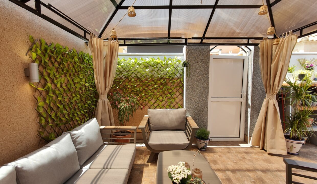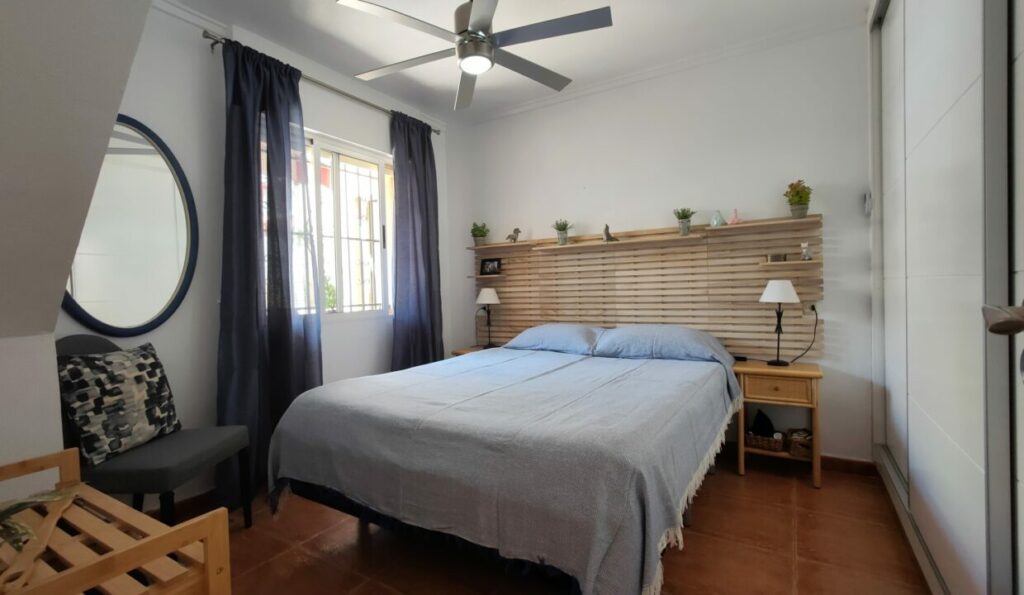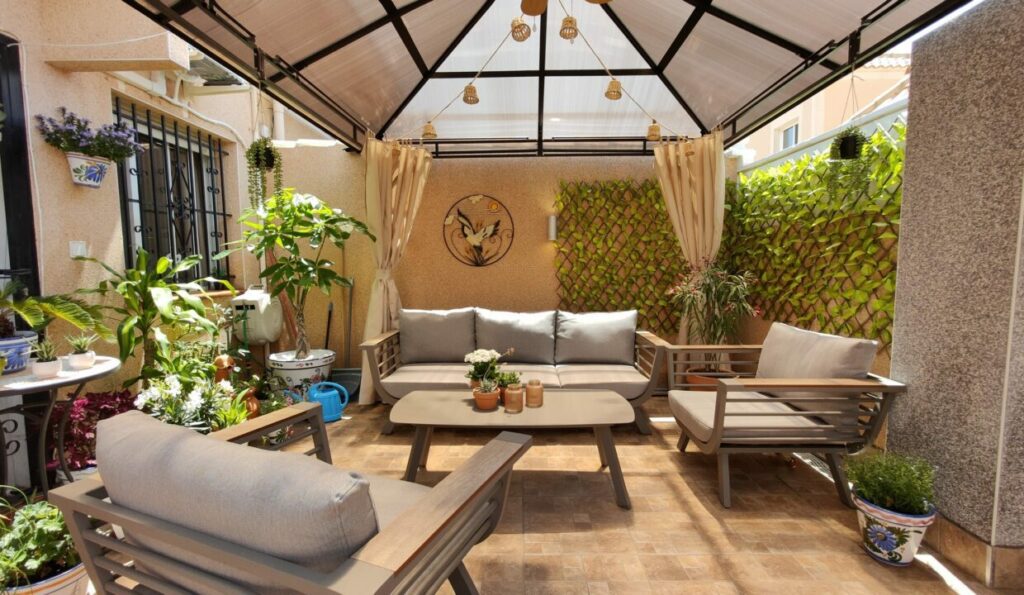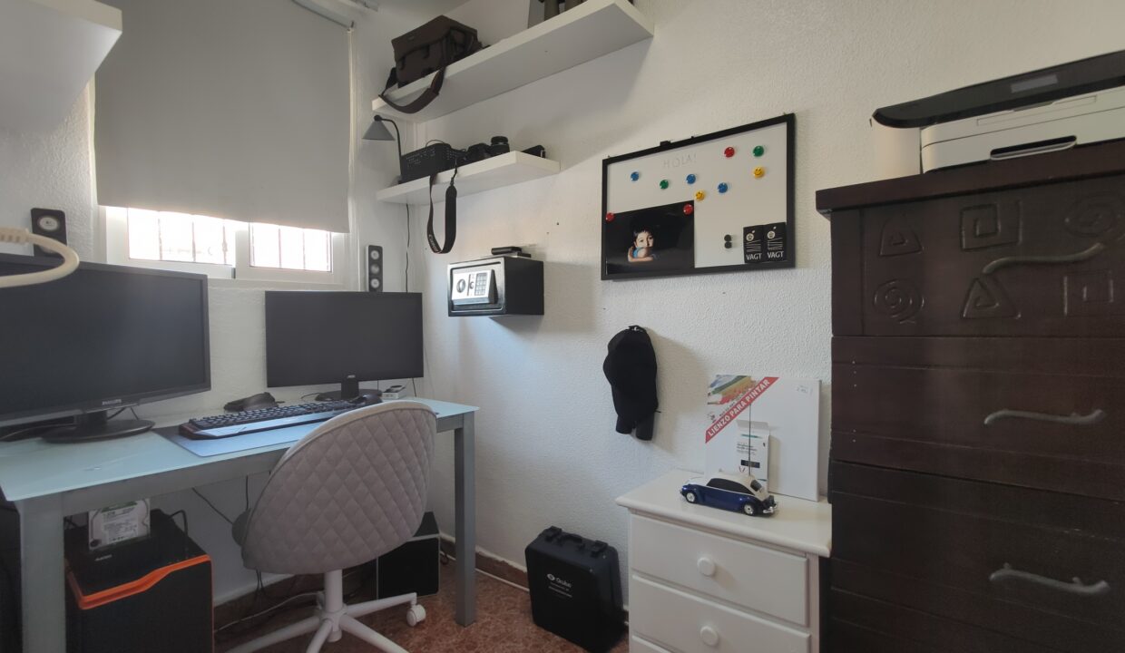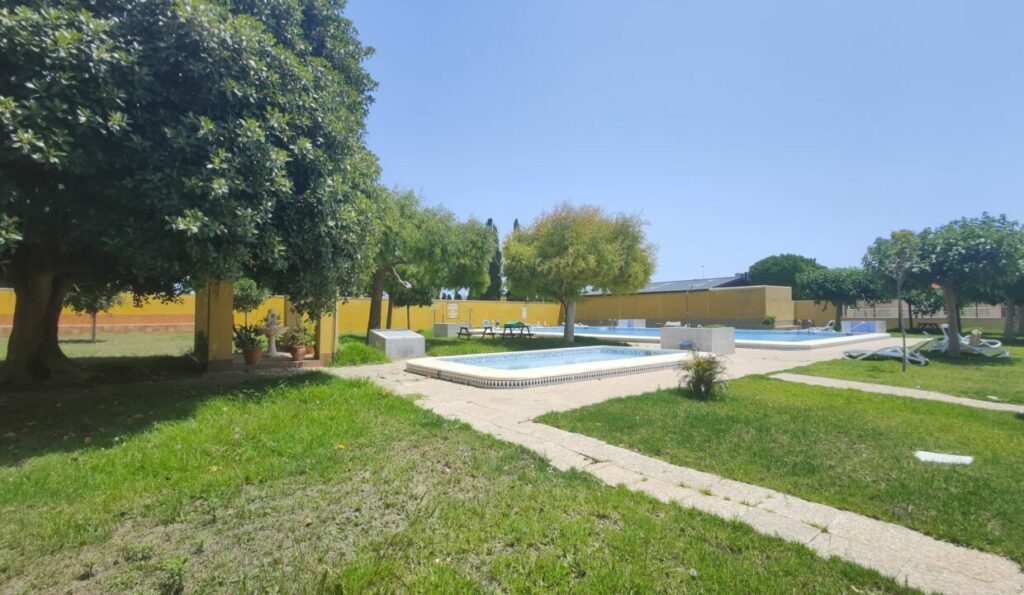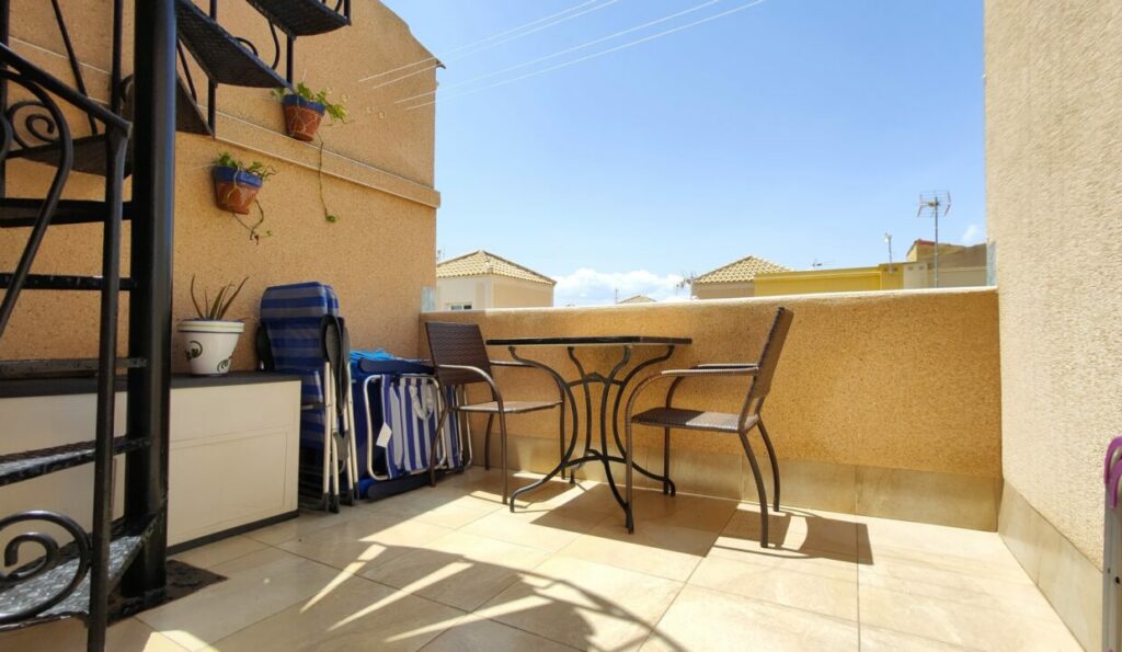 Vi er glade for å presentere denne vakre delvis renoverte tomannsboligen for salg i Jardín del Mar III – Torrevieja. Eiendommen ligger i en lukket urbanisasjon med et stort felles svømmebasseng omgitt av grønne områder.