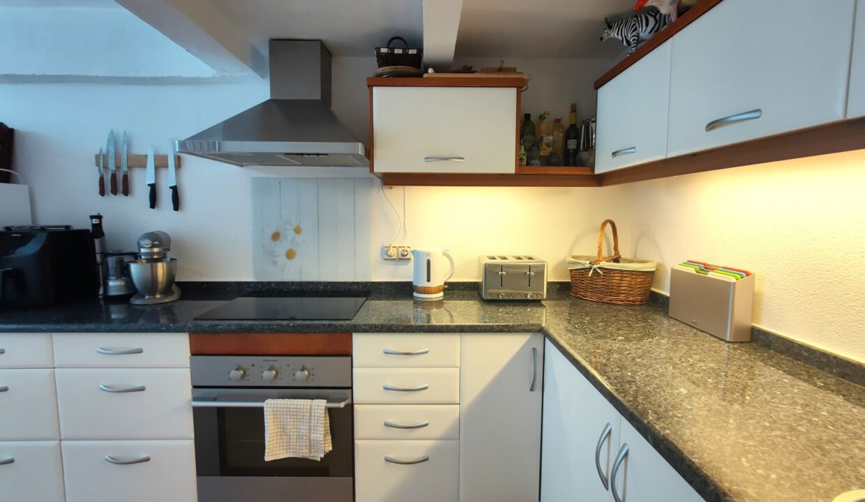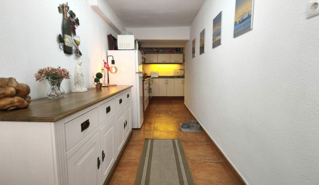 I første etasje finner vi en romslig smakfullt innredet og møblert stue og en koselig spiseplass, et fint nylig renovert bad med dusjkabinett, et stort soverom med en stor innebygd garderobe og et uavhengig kjøkken fullt utstyrt.