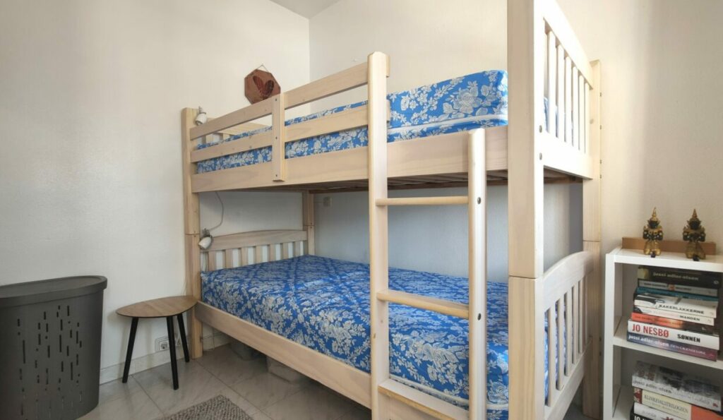 I andre etasje finner vi ytterligere et bad med dusj, 2 soverom med garderobeskap, ett av dem med utgang til et ekstra rom som nå brukes som kontor, og en solrik balkong.