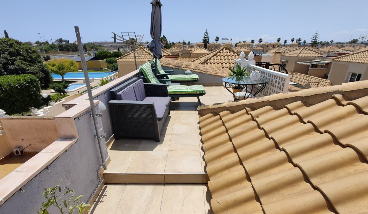 Området heter Jardin del Mar. Dette er et veletablert område utenfor Torrevieja sentrum, nær de store naturreservatene. Restauranter, matbutikker, sjømannskirken, vannland, shoppingsenter og barer ligger i nærheten. Det er vakker natur og gode turmuligheter i området. Gode bussforbindelser til Torrevieja.