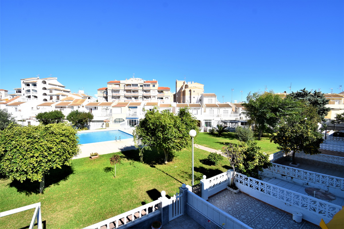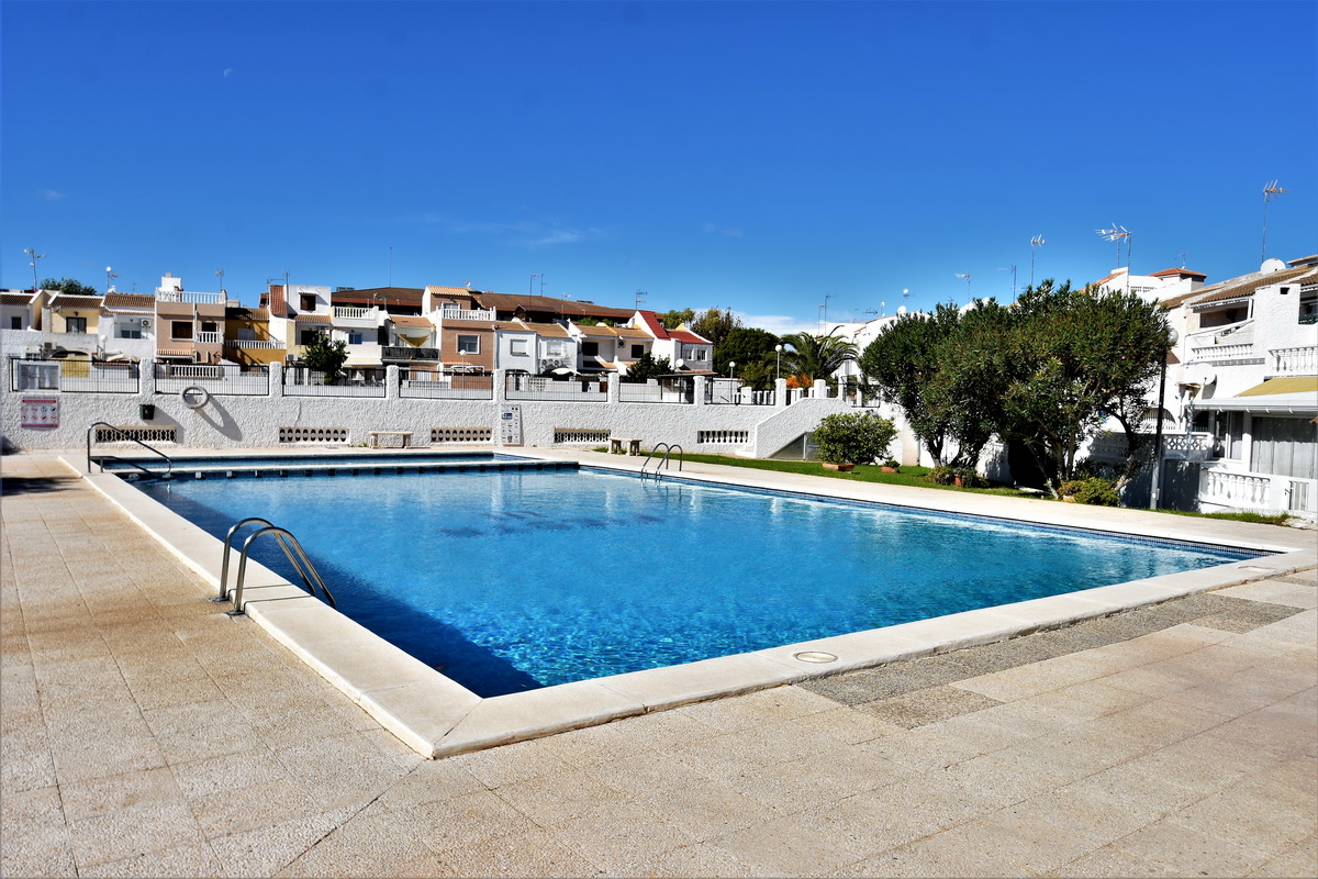 Dette er et fint sydvendt rekkehus på n m2 nær Torrevieja sentrum. Urbanisasjonene heter Fiesta III og har et flott bassengområde.