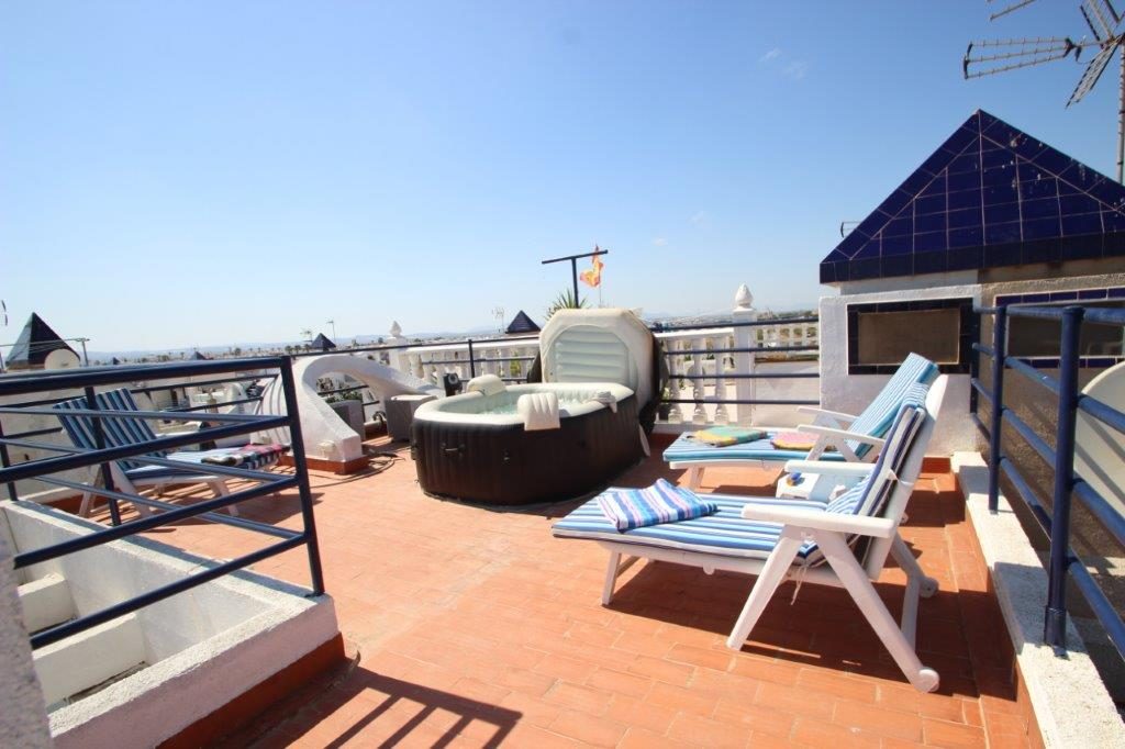I andre etasje er det 2 soverom med garderobeskap, bad og en fin solrik terrasse. På toppen er det en stor takterrasse med «chill out» område med jacuzzi.