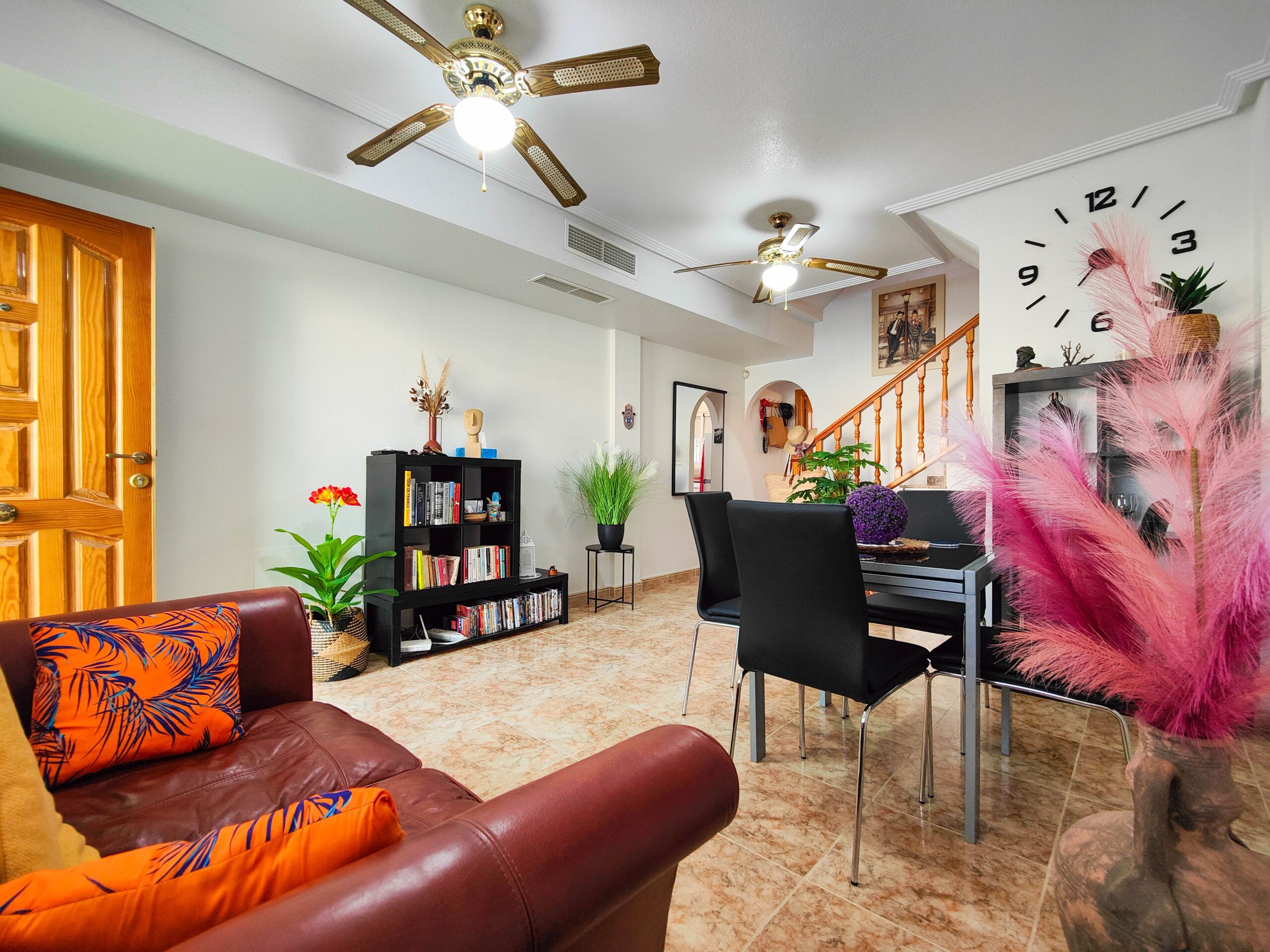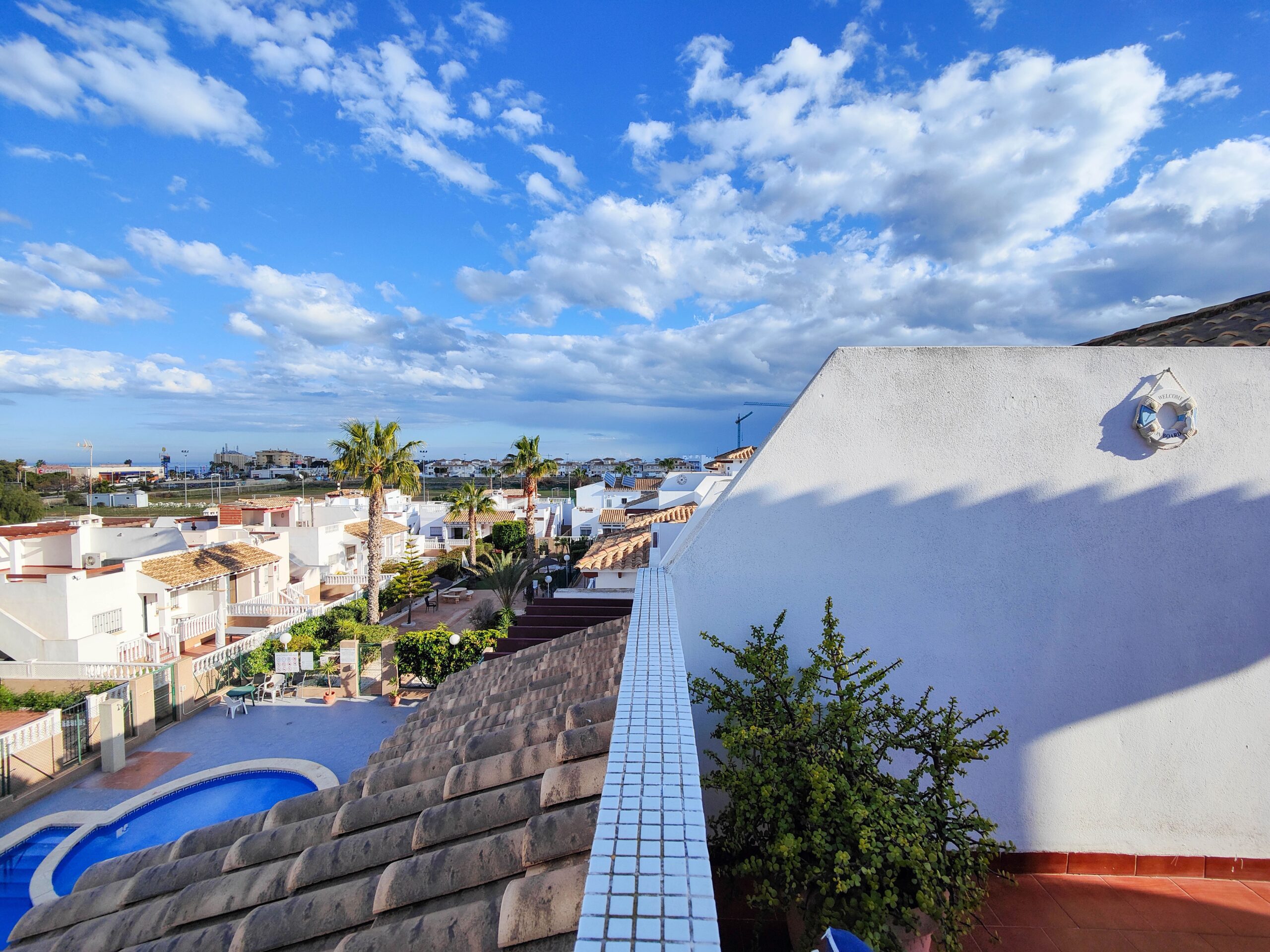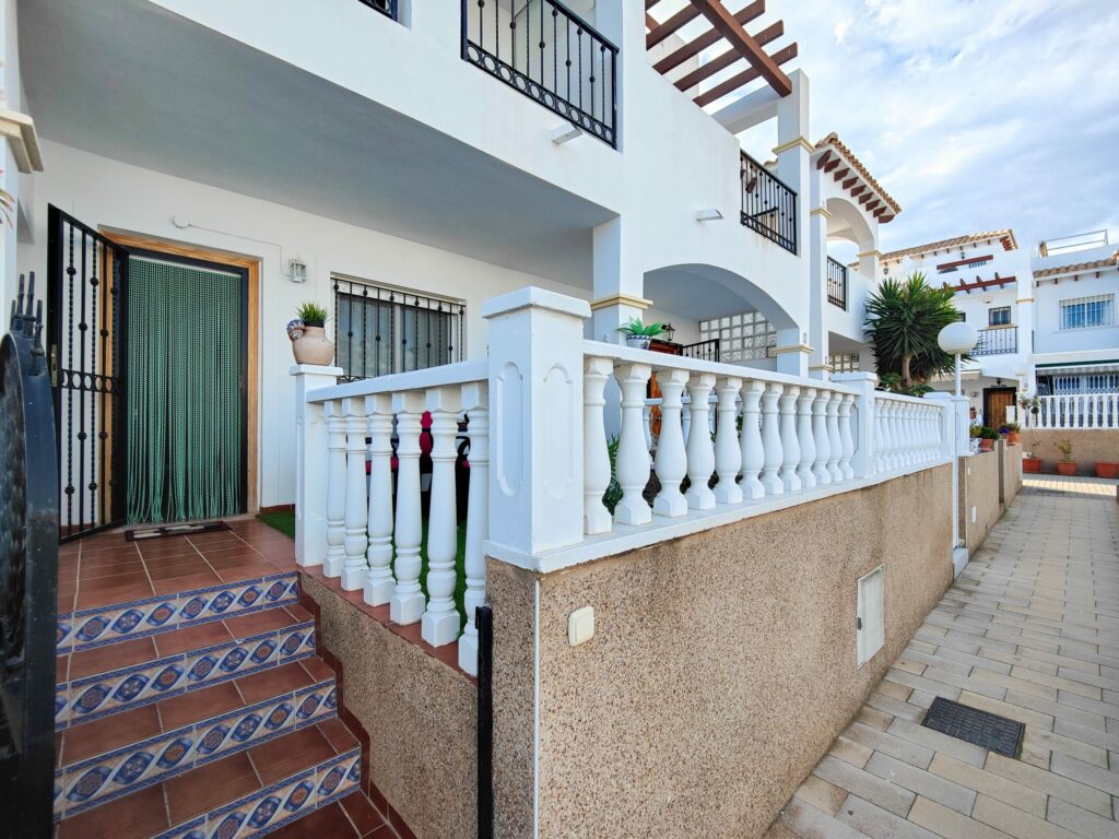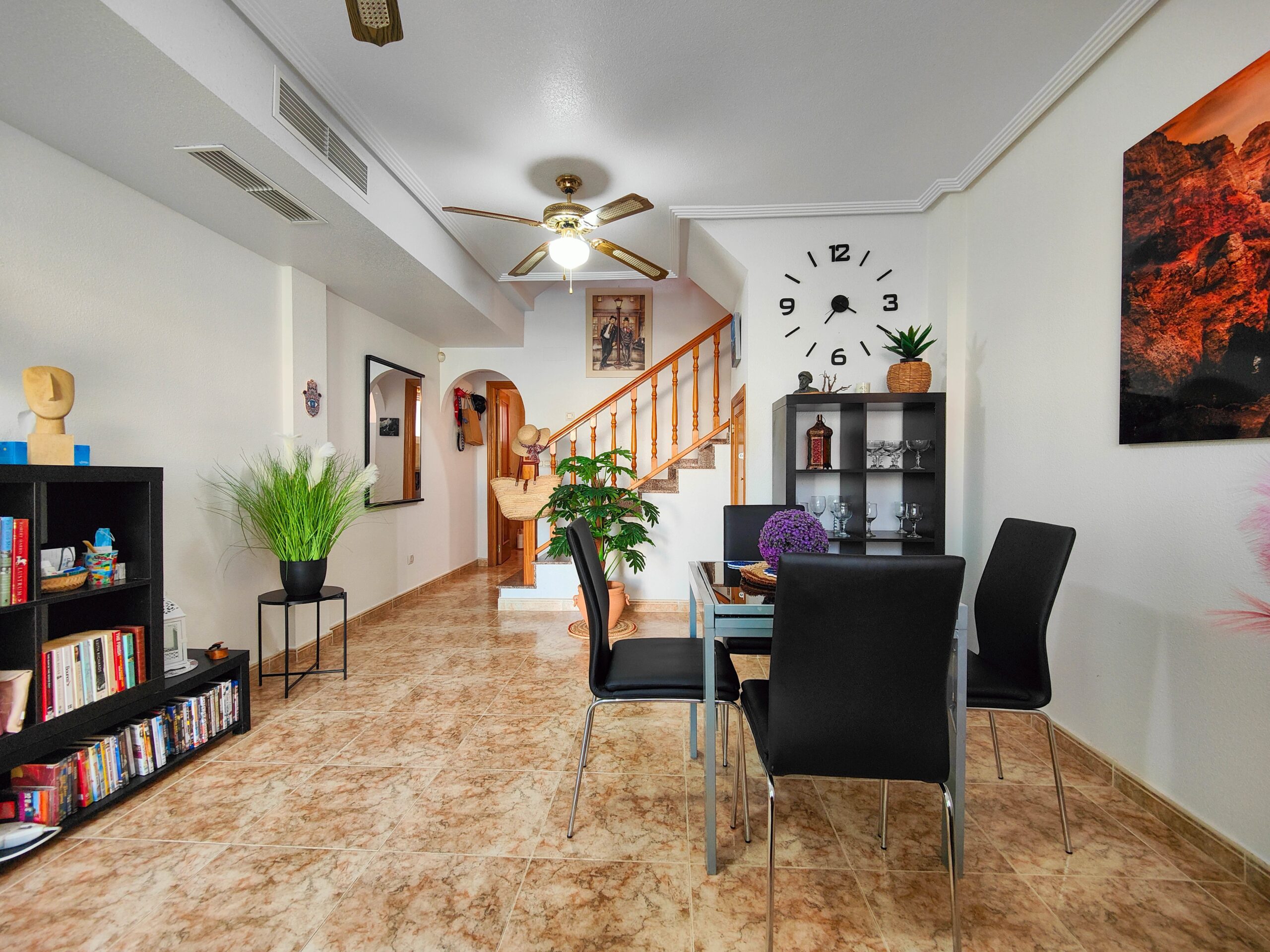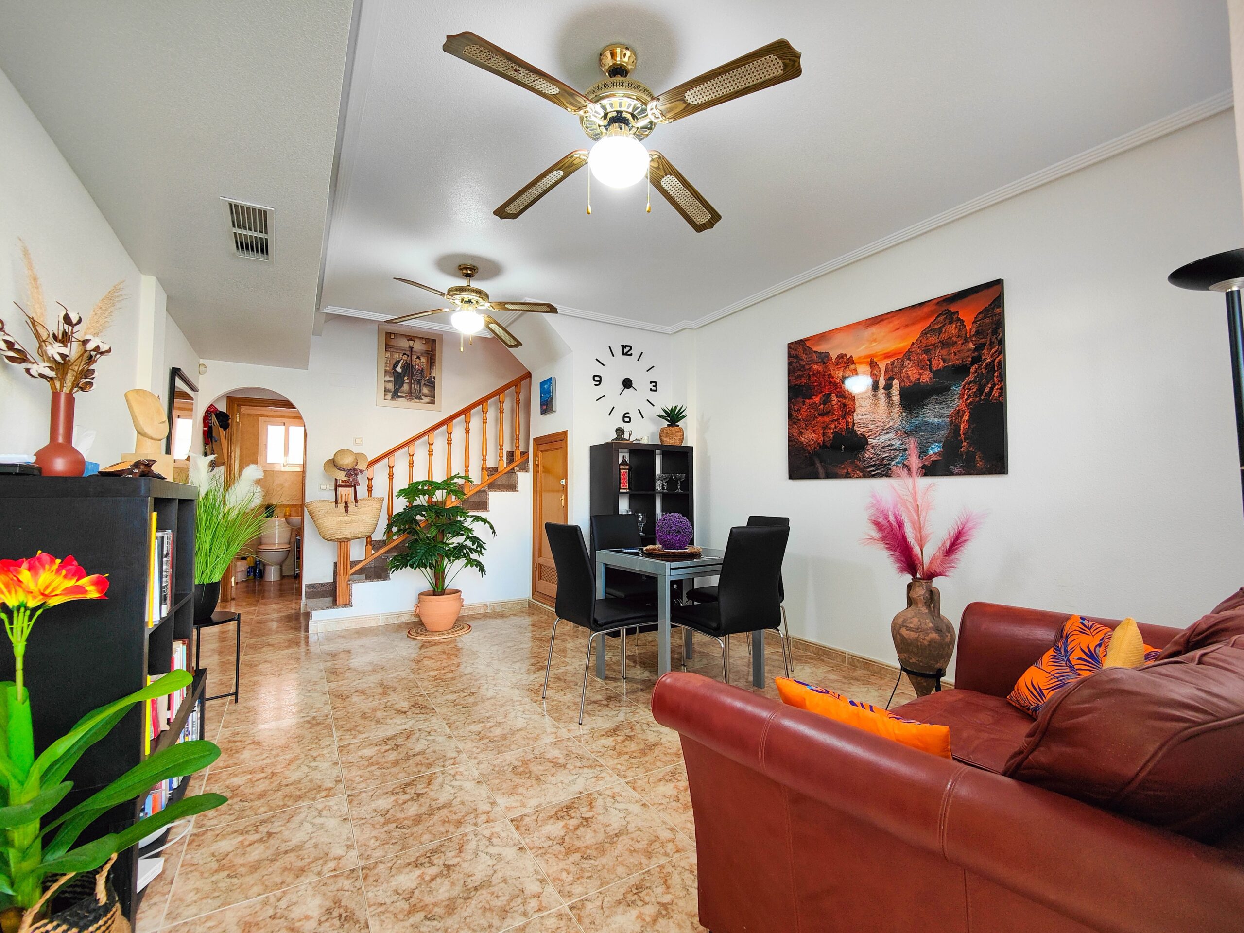 Dette upåklagelige rekkehuset er til salgs i La Ciñuelica, et privat og inngjerdet boligområde som ligger i Punta Prima, Orihuela Costa.