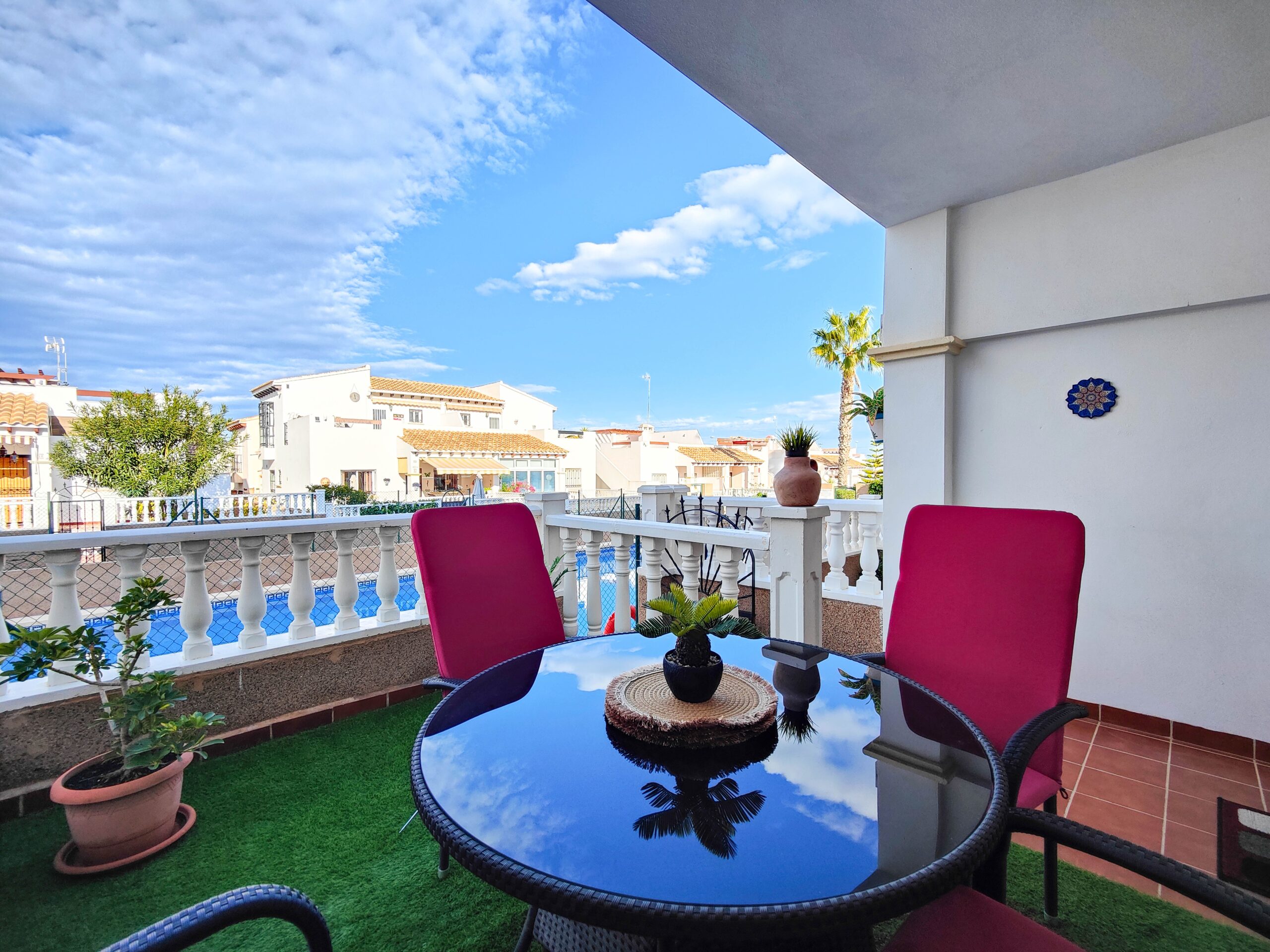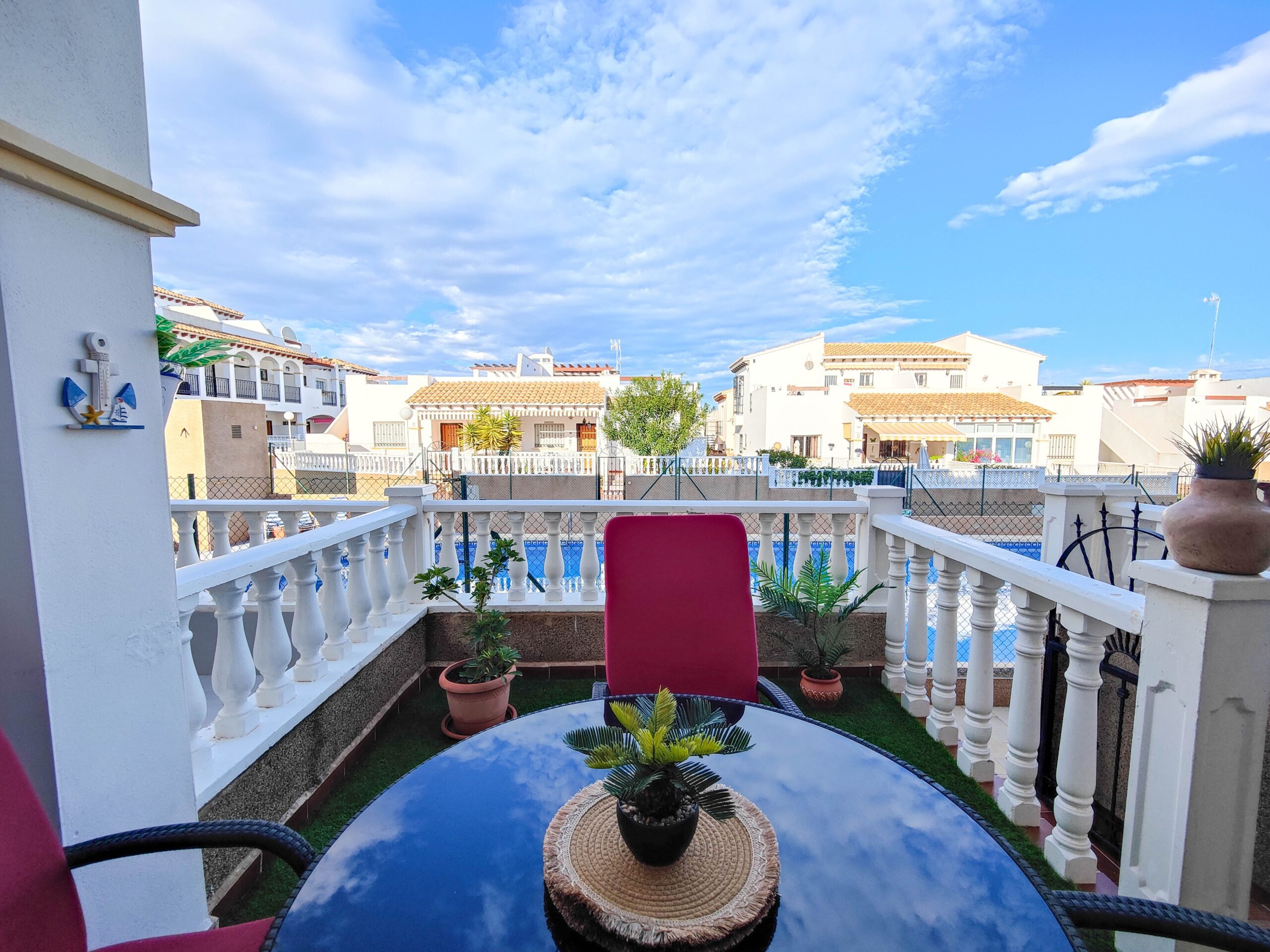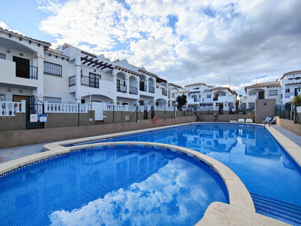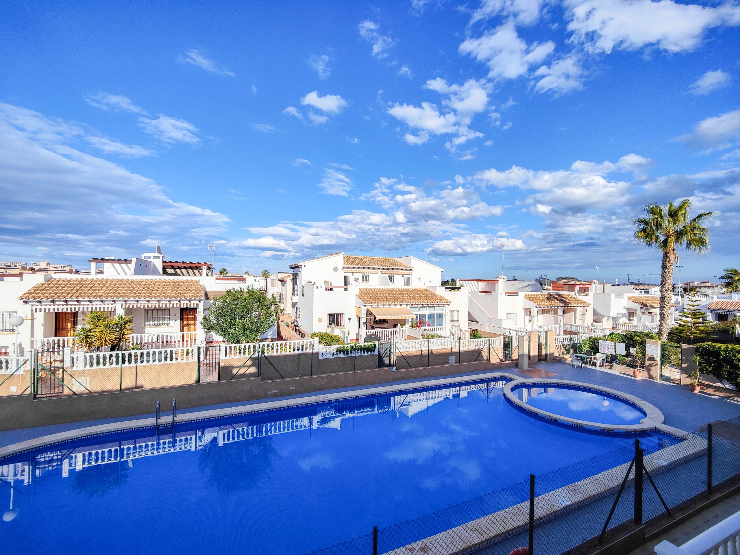 Dette upåklagelige rekkehuset er til salgs i La Ciñuelica, et privat og inngjerdet boligområde som ligger i Punta Prima, Orihuela Costa.