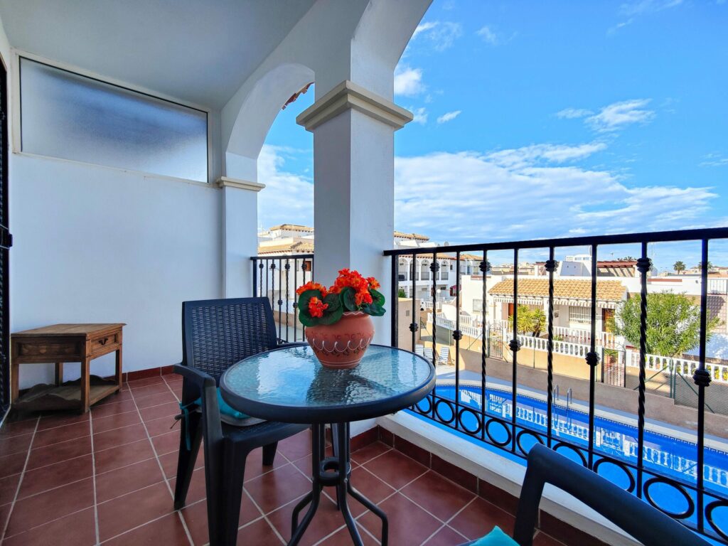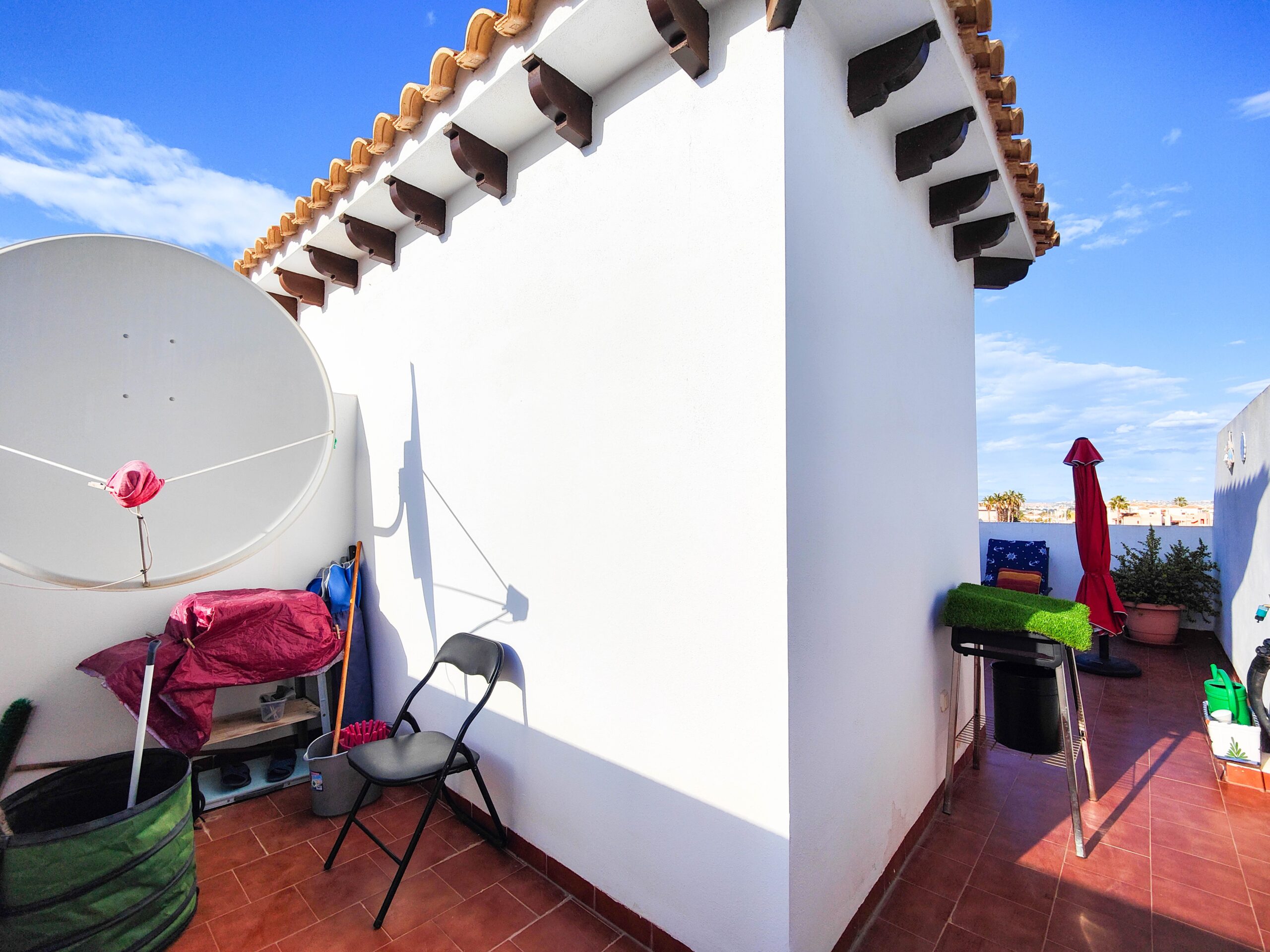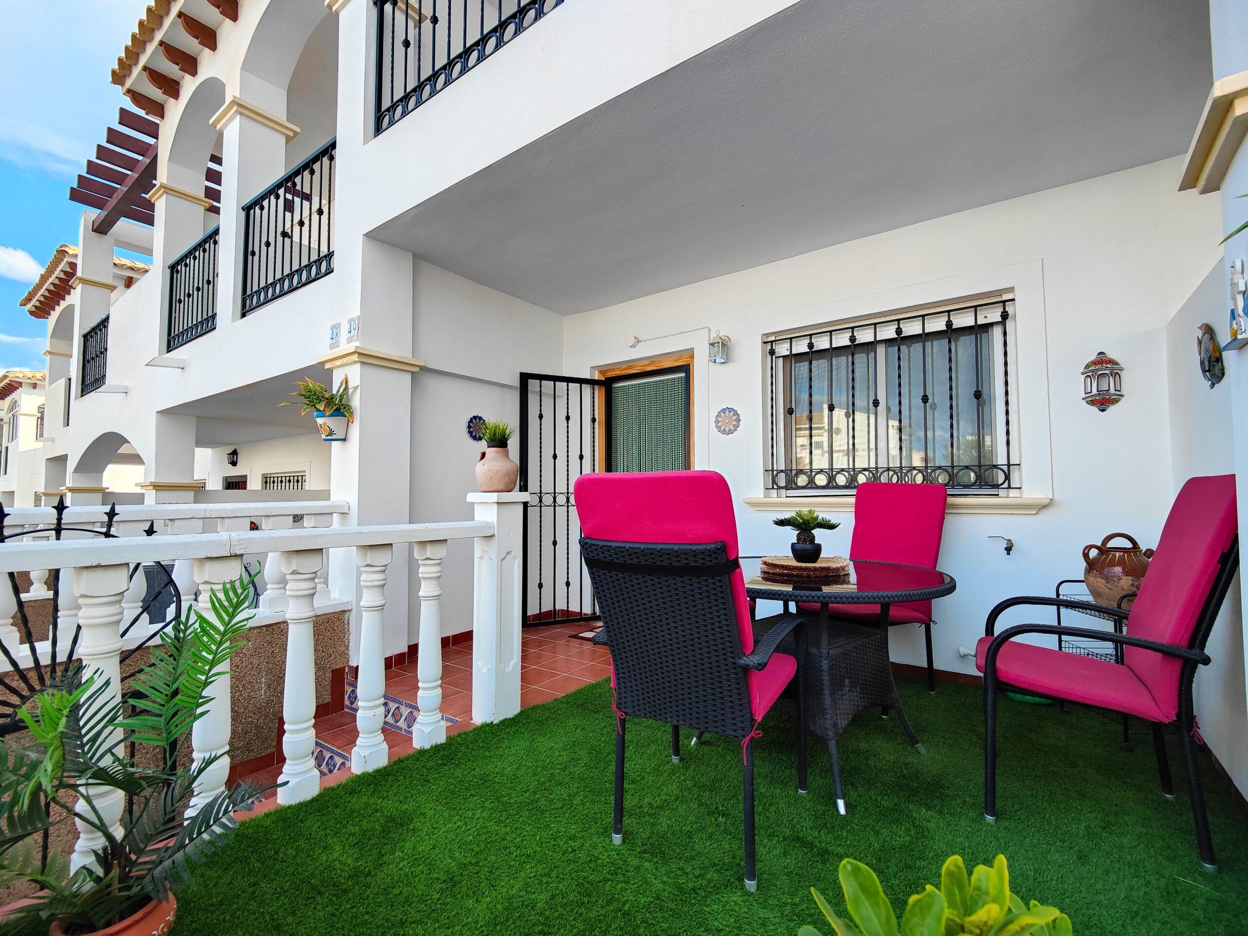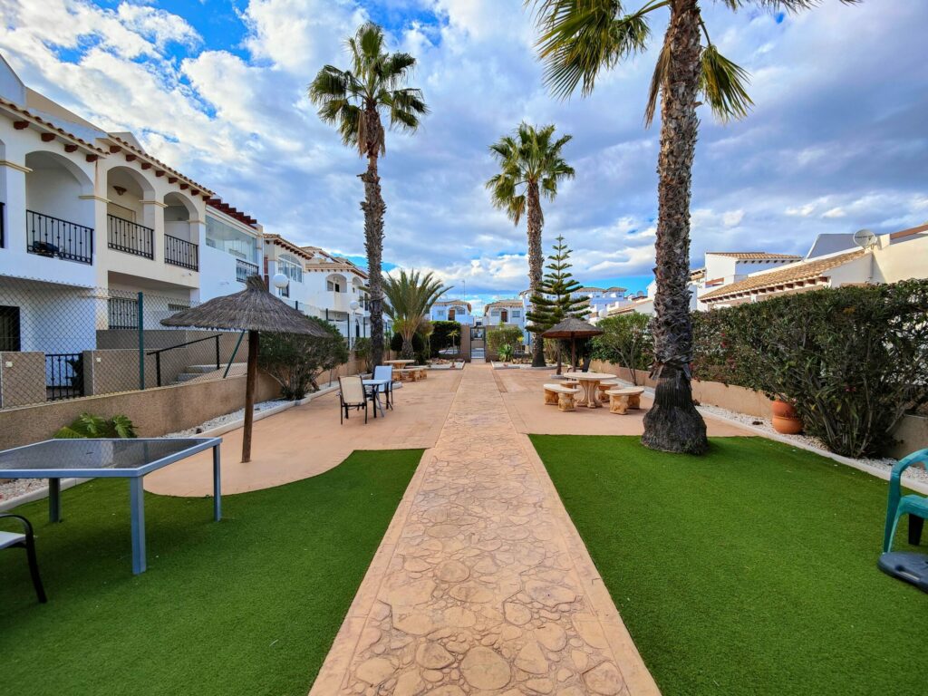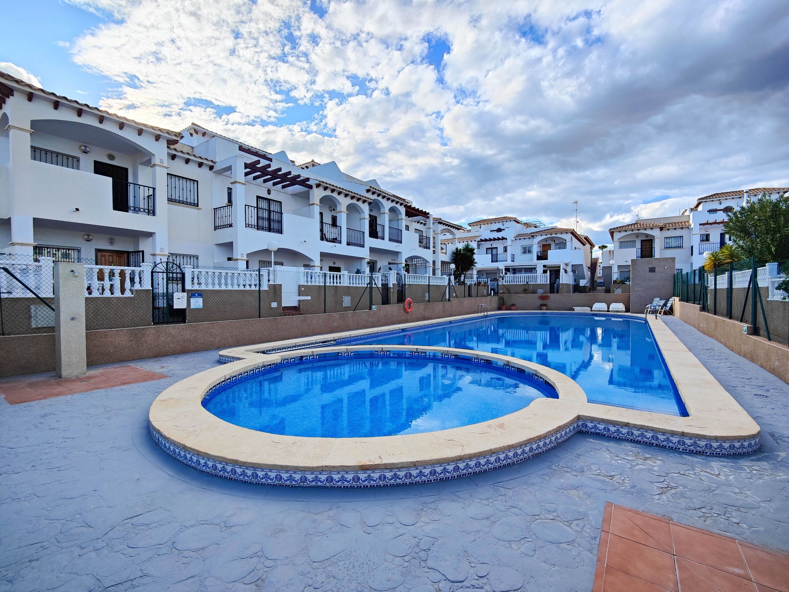 Dette upåklagelige rekkehuset er til salgs i La Ciñuelica, et privat og inngjerdet boligområde som ligger i Punta Prima, Orihuela Costa.