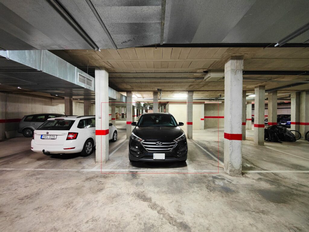 Det følger med en stor parkeringsplass i den underjordiske garasjen.