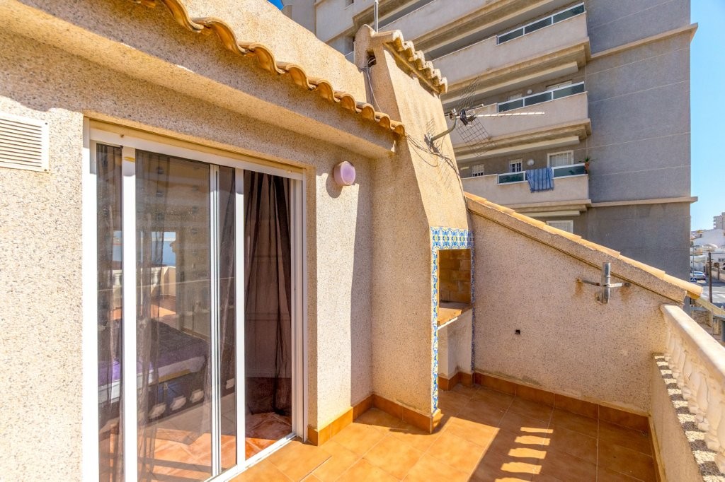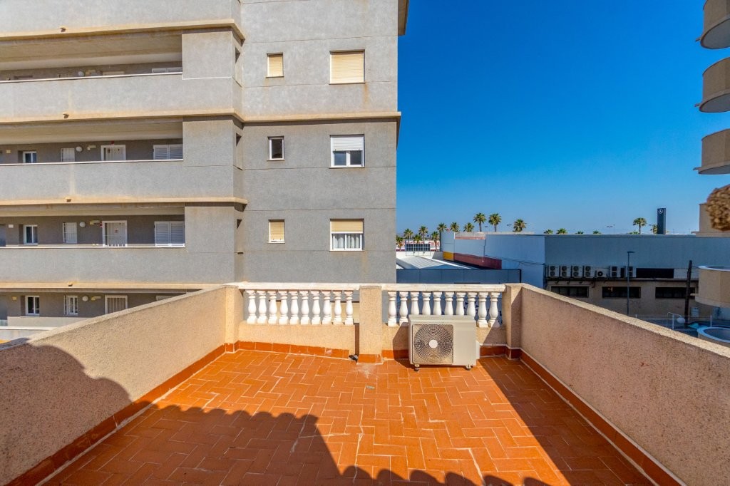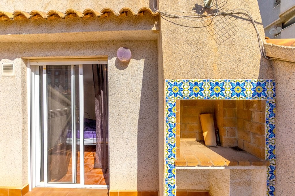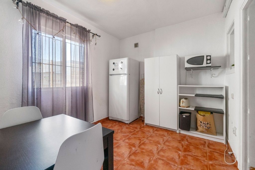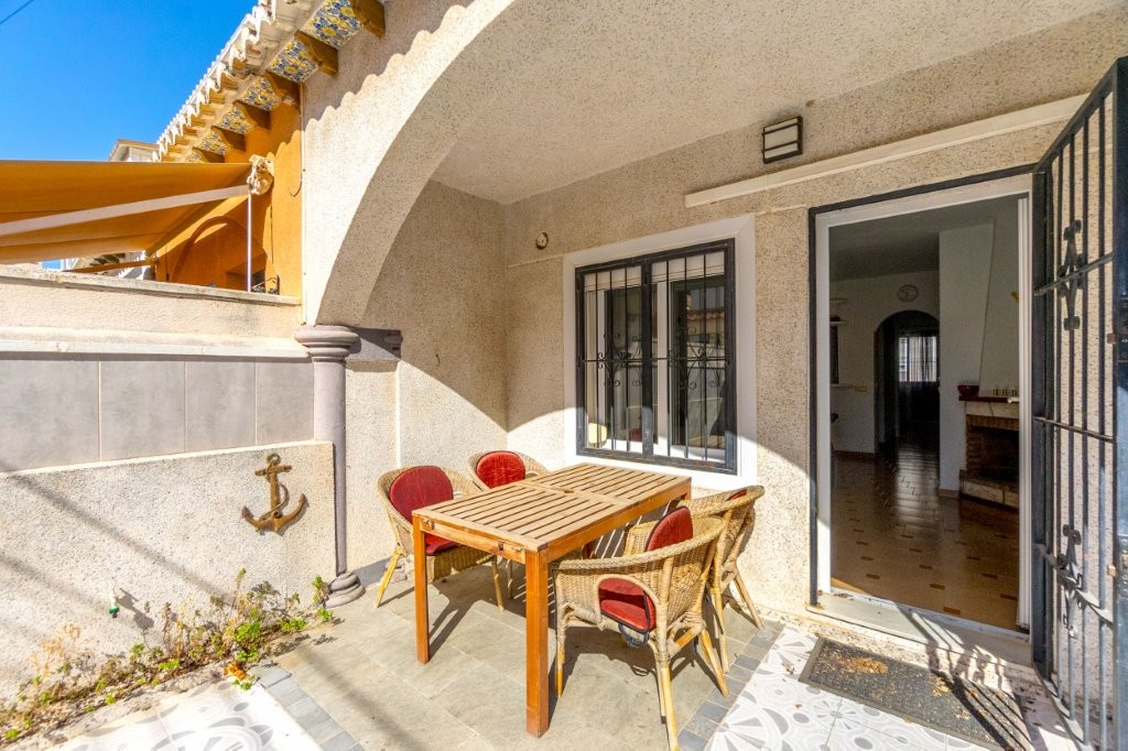 Rekkehuset ligger i Nueva Torrevieja, med kort avstand til hovedsentrum, stranden og strandpromenaden. Et rolig område med mange fastboende.