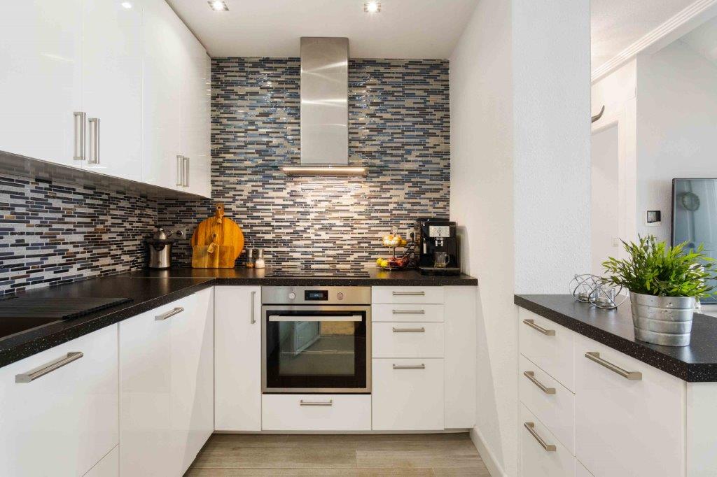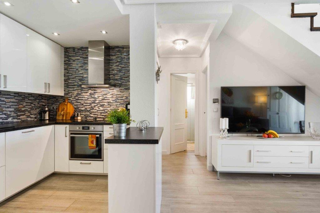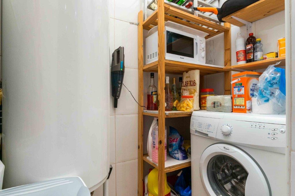 Det er en lys og fin stue med åpen løsning mot det moderne kjøkkenet. Ved siden av kjøkkenet er det en patio/vaskerom. Det er også to soverom og et bad i denne etasjen.
