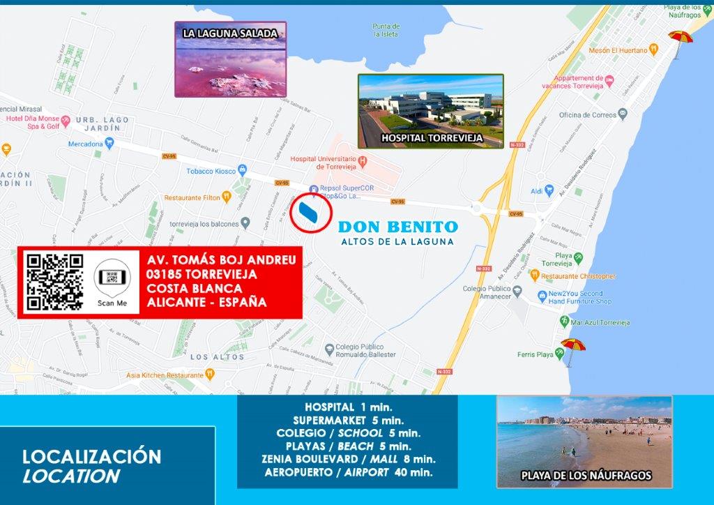 Los Balcones ligger rett syd for Torrevieja sentrum. Ypperlig for de som vil bo sentralt men allikevel tilbaketrukket fra byens larm.  Det er et bredt spekter av servicetilbud i nærheten og bare ca 1,6 km til de nydelige strendende ved Middelhavet.