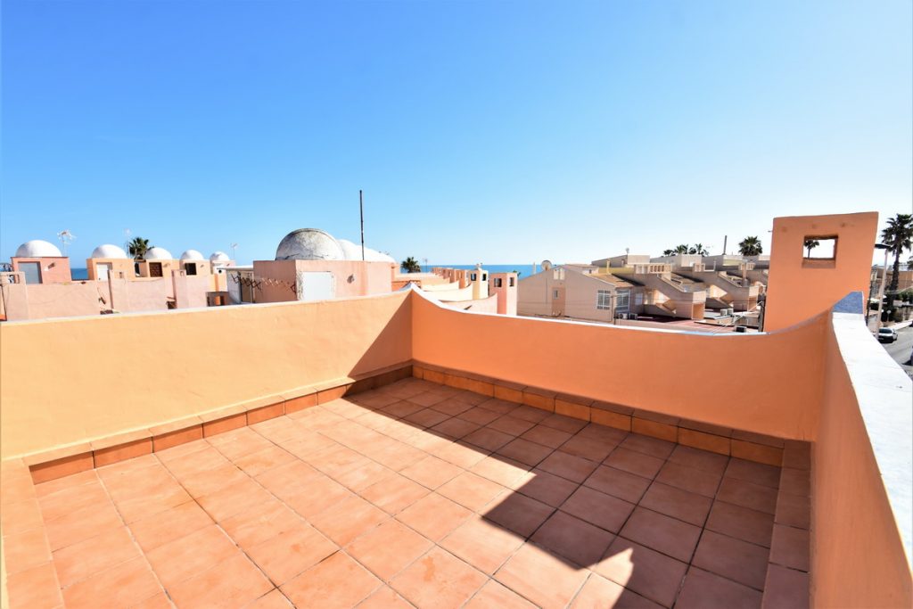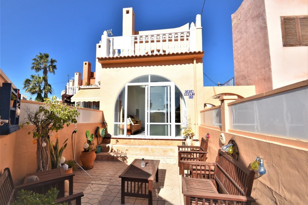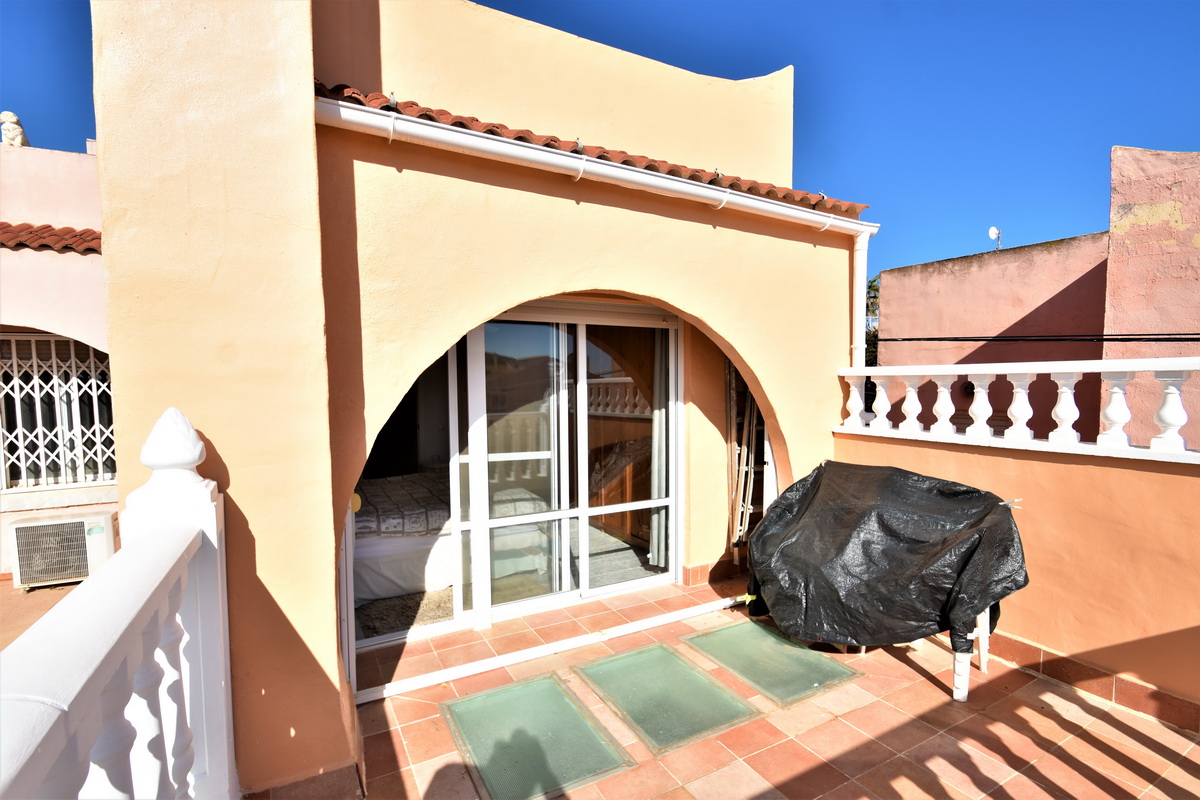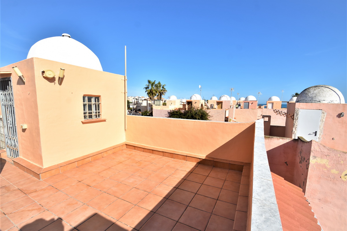 *SOLGT* Los Frutales- Rekkehus i Calas de Torrejon med havutsikt. Hage, terrasse og takterrasse.