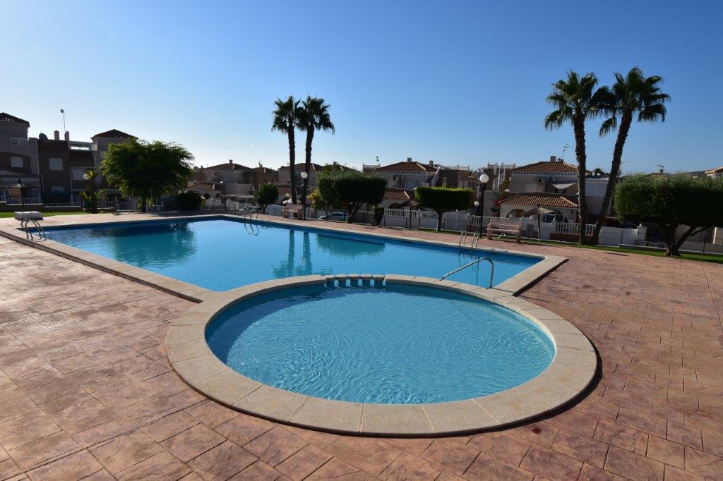 Boligen ligger i et lukket område med et fantastisk felles svømmebasseng og grønne områder.
