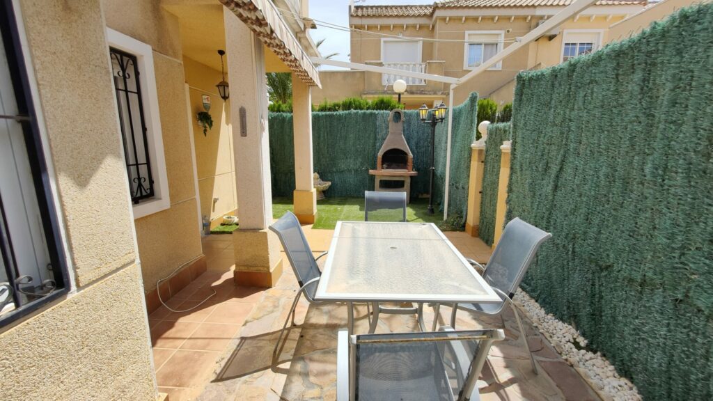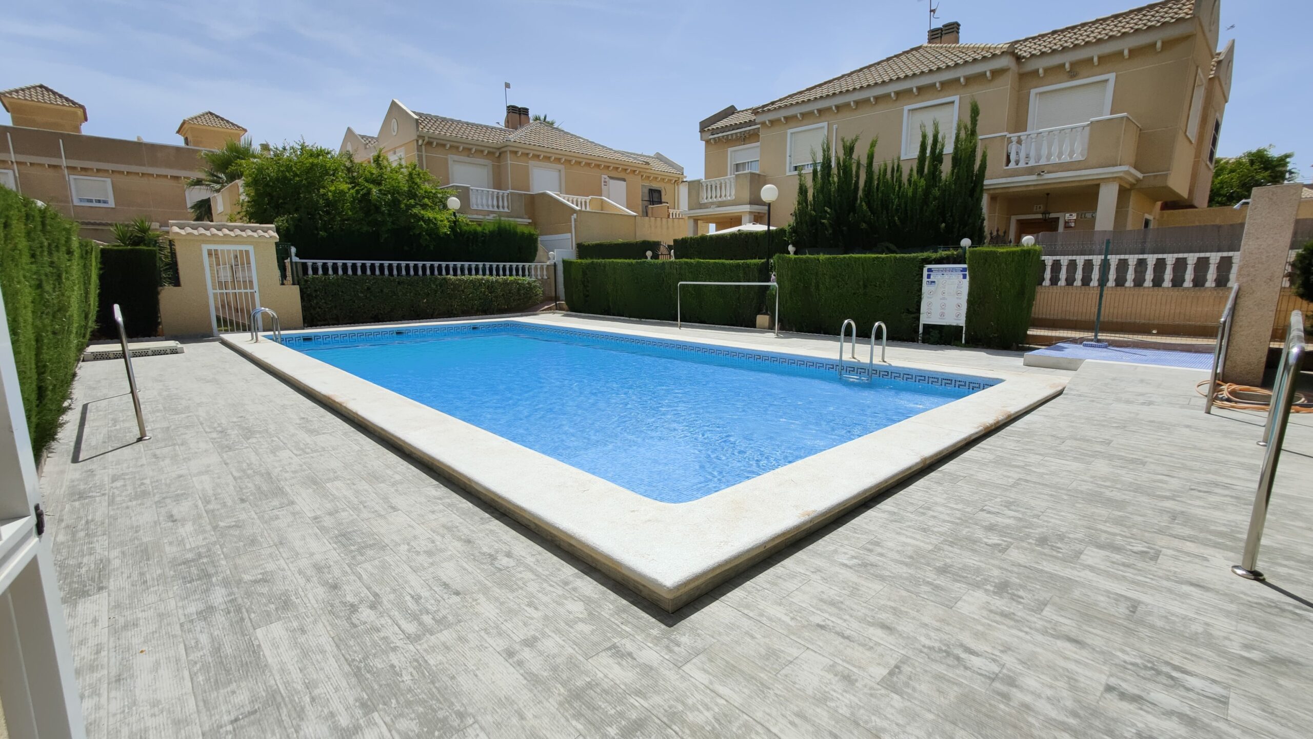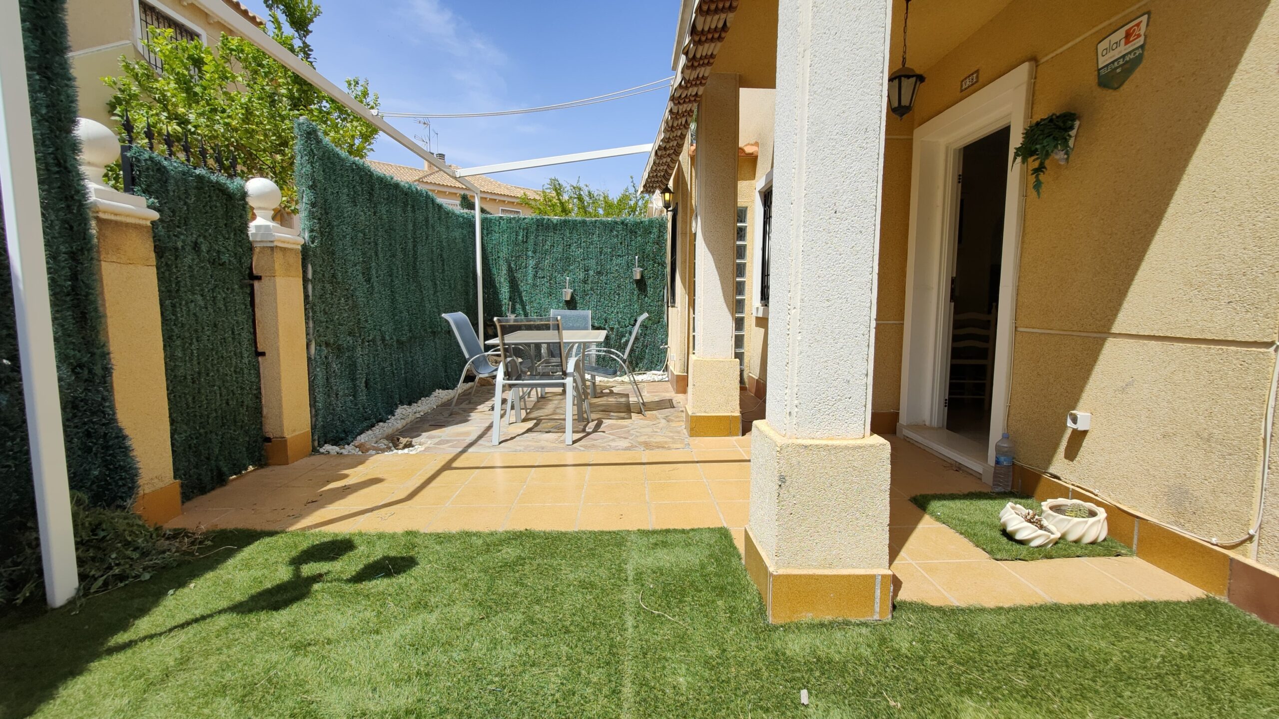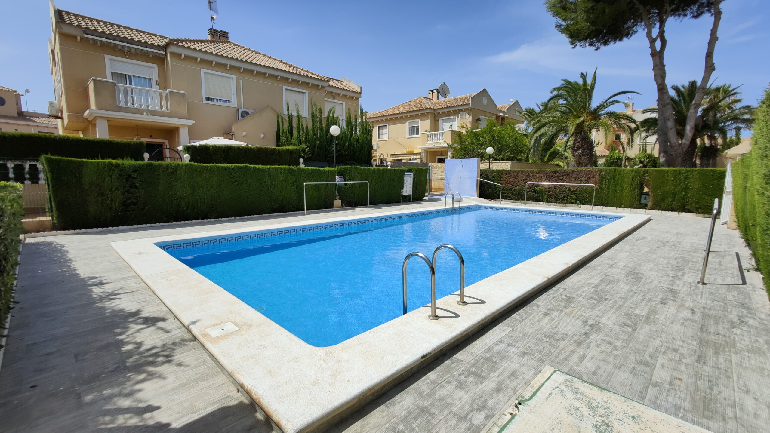 Flott hjørne rekkehus med en hage i god størrelse til salgs i Residencial Balcón, som ligger i Torreblanca – Torrevieja-området, kun 1,3 km fra La Mata-stranden.