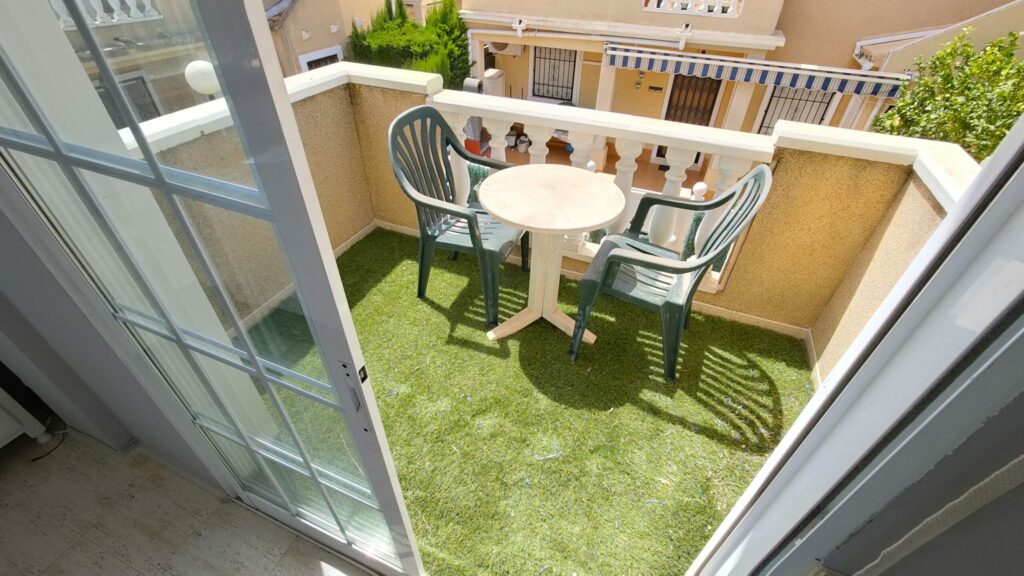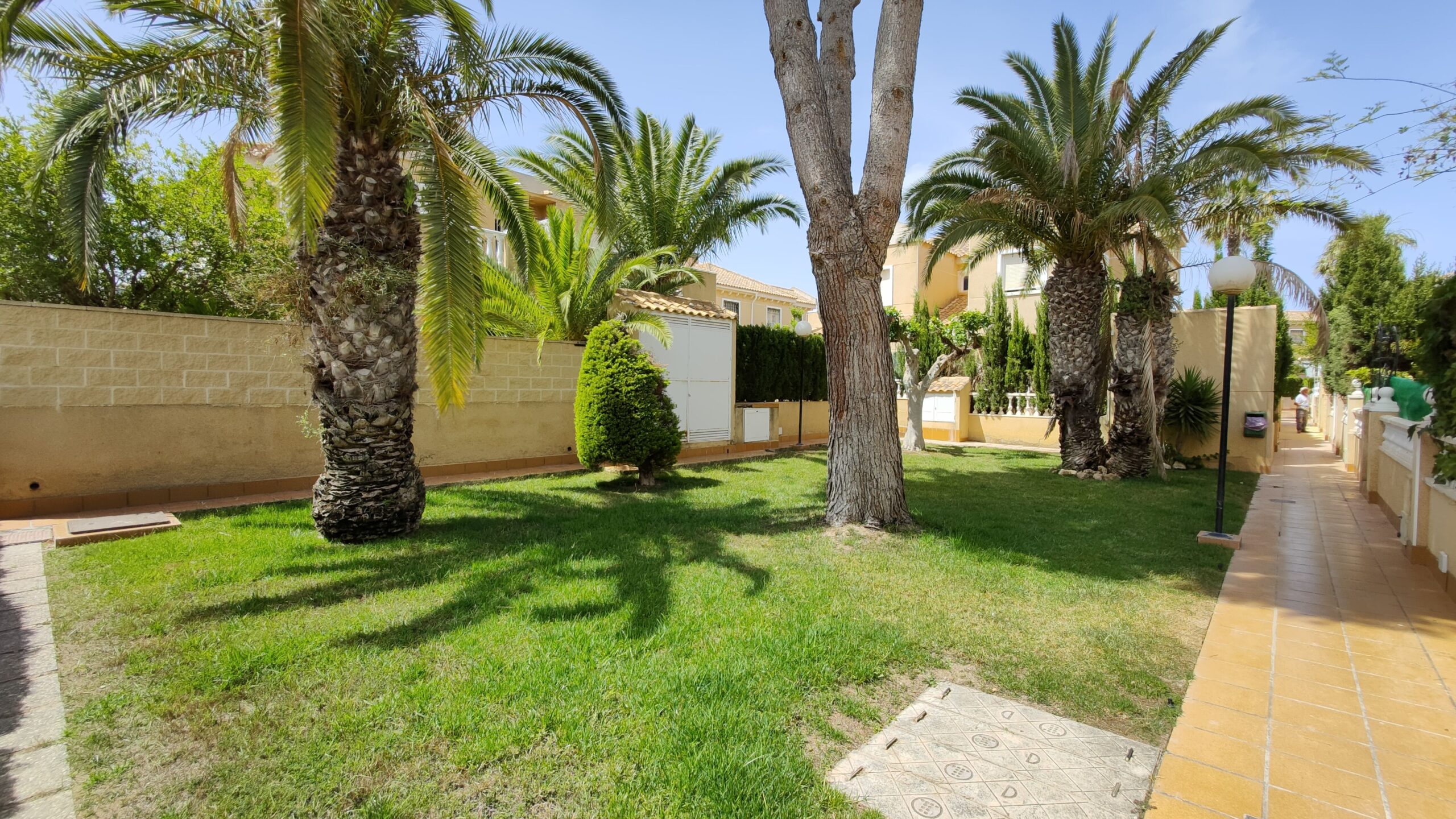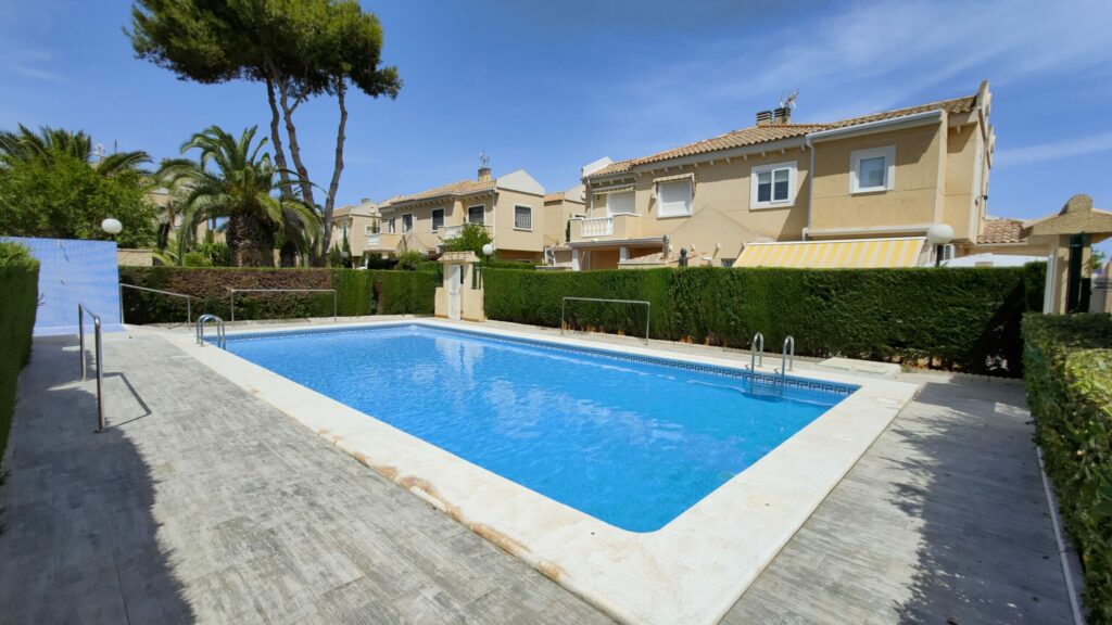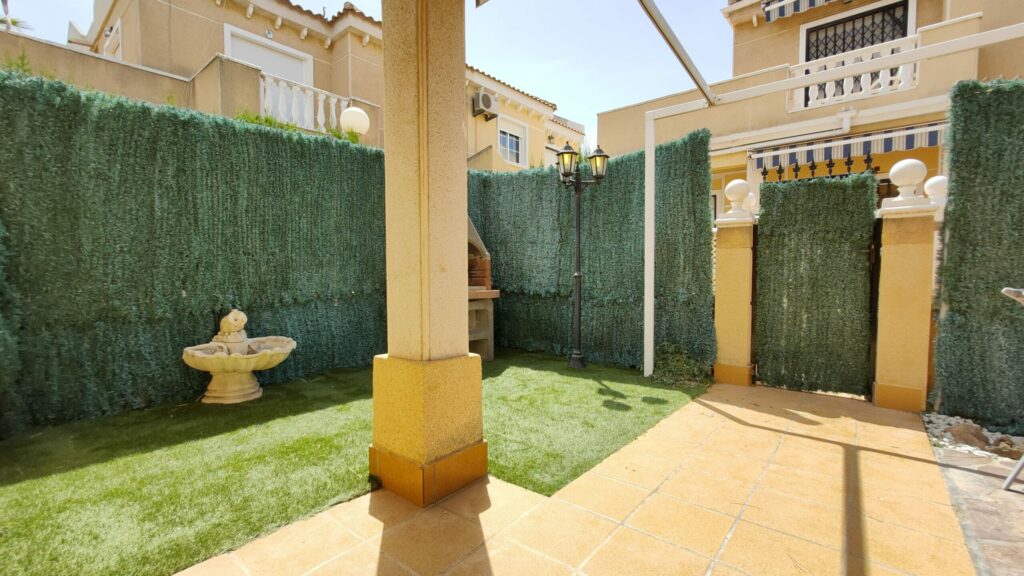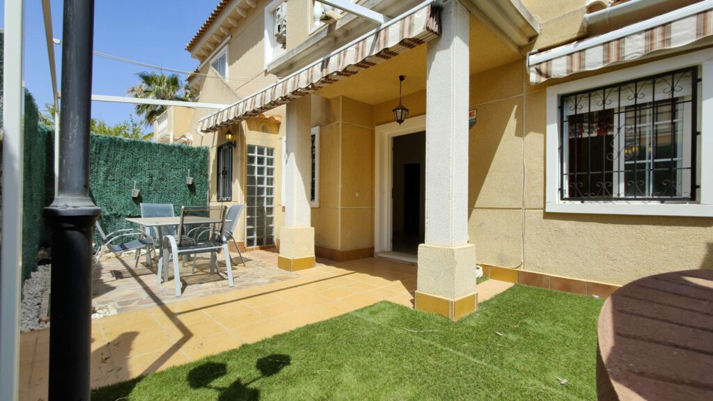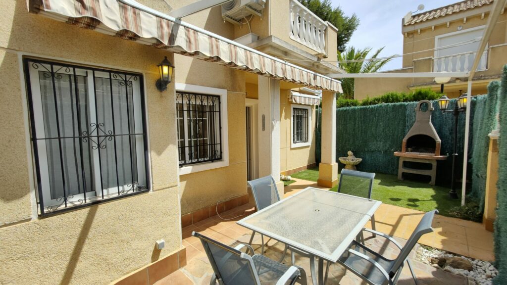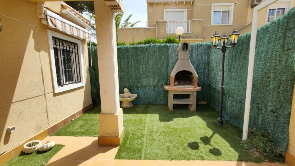 Flott hjørne rekkehus med en hage i god størrelse til salgs i Residencial Balcón, som ligger i Torreblanca – Torrevieja-området, kun 1,3 km fra La Mata-stranden.