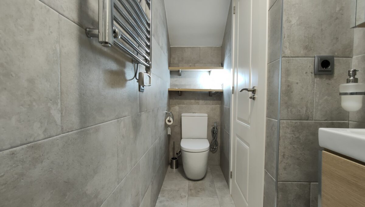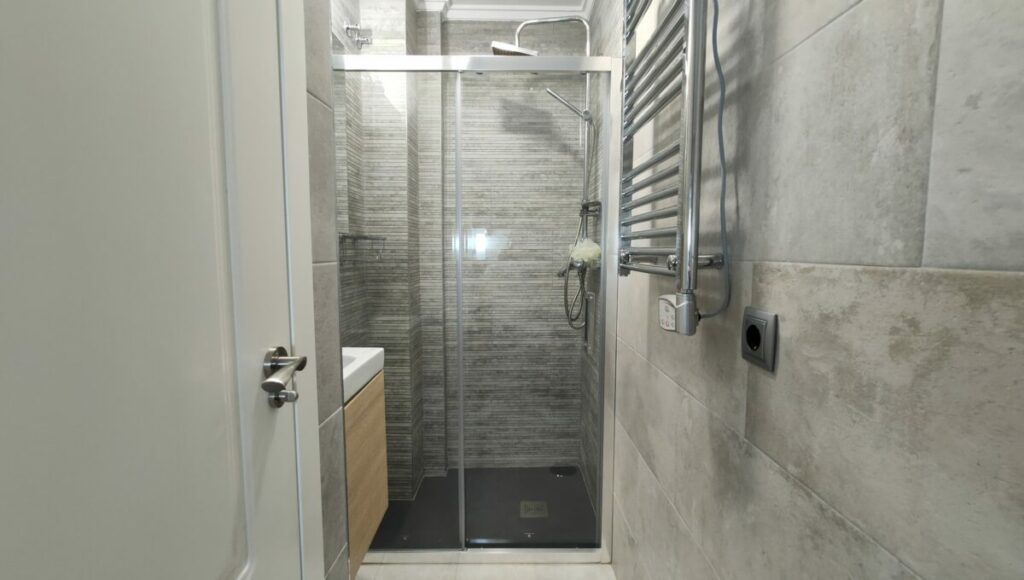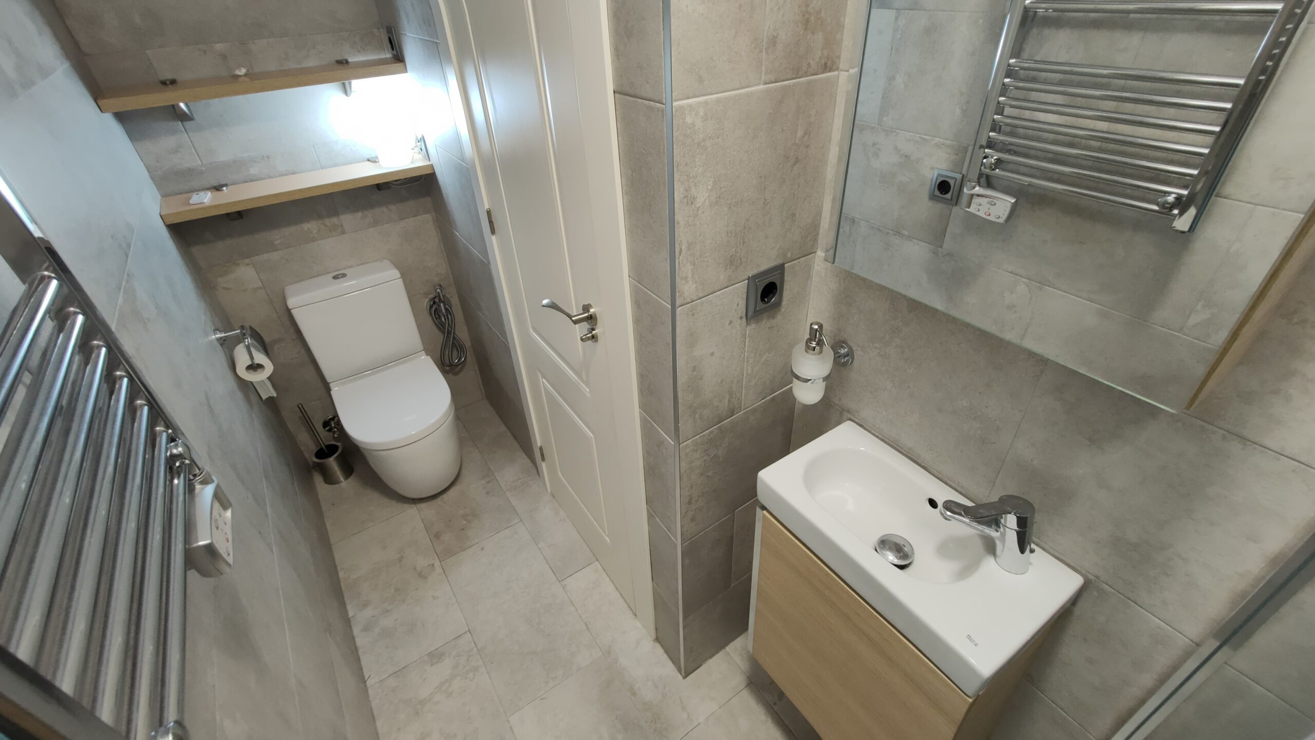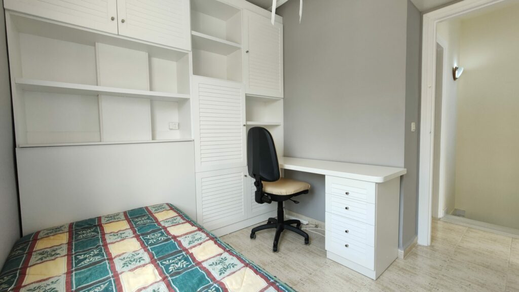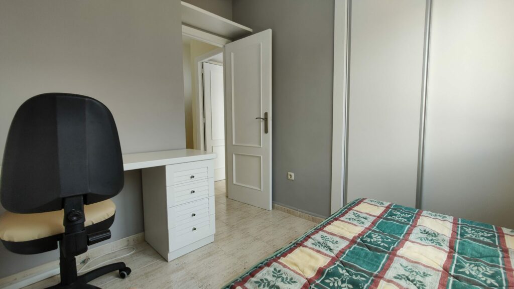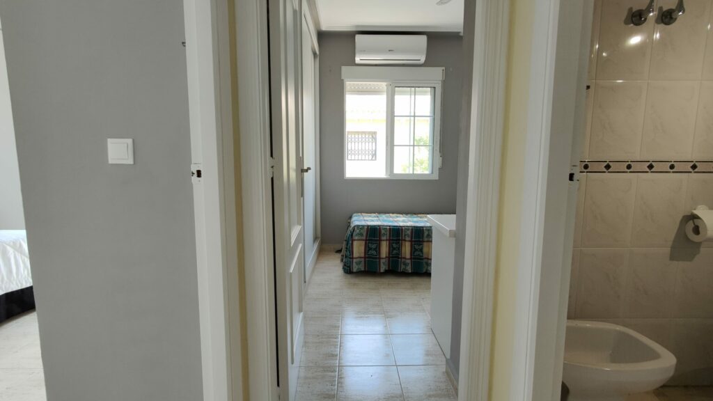Boligen har 2 soverom med innebygde garderober og takvifter, ett av dem med privat terrasse, 2 bad, hvorav det ene er totalrenovert, romslig stue/spisestue og et nylig renovert kjøkken utstyrt med hvitevarer. Stuen og begge soverommene har klimaanlegg. Utenfor finner vi en fin hage med kunstgress og grillplass. Sørvestlig orientering.