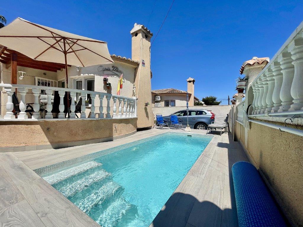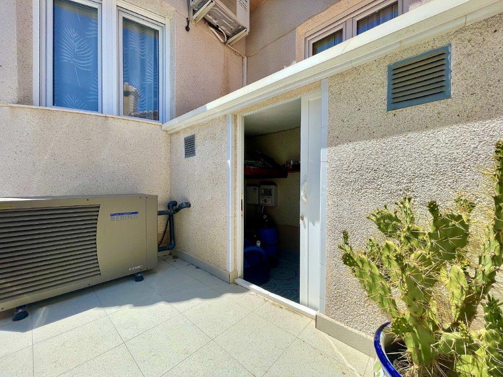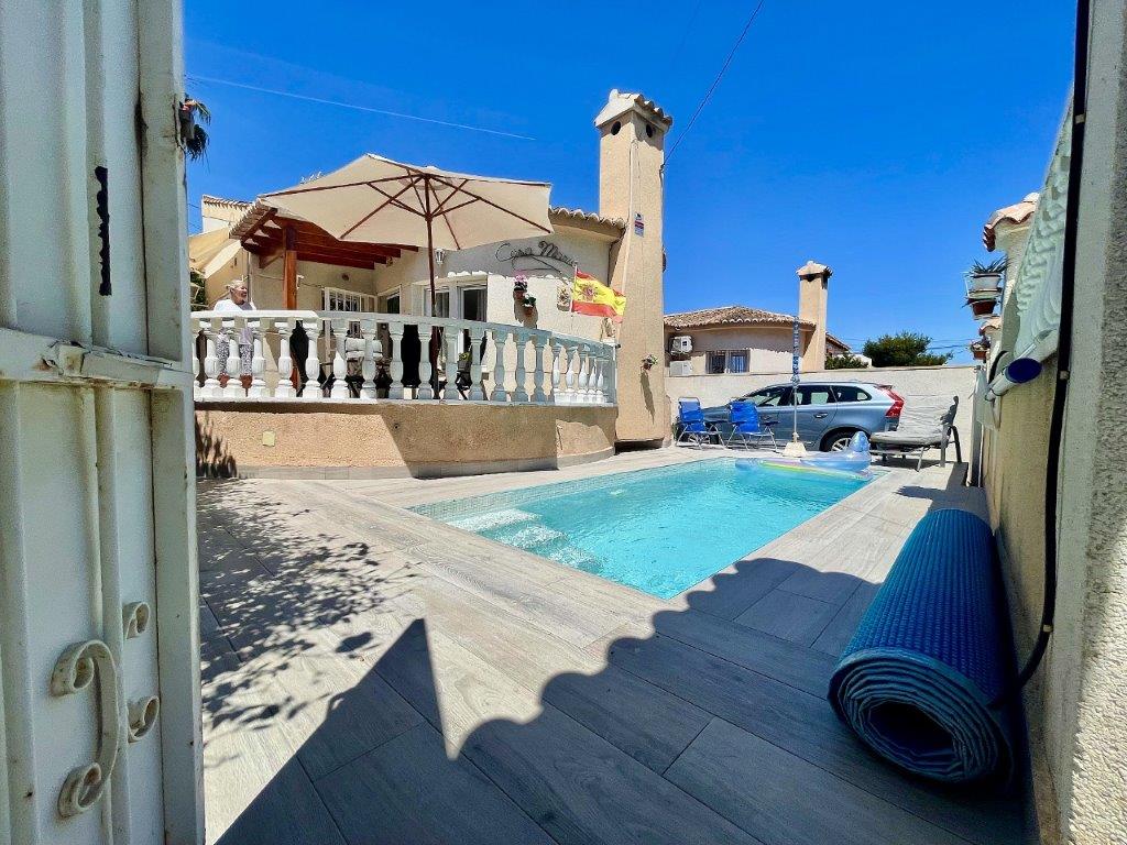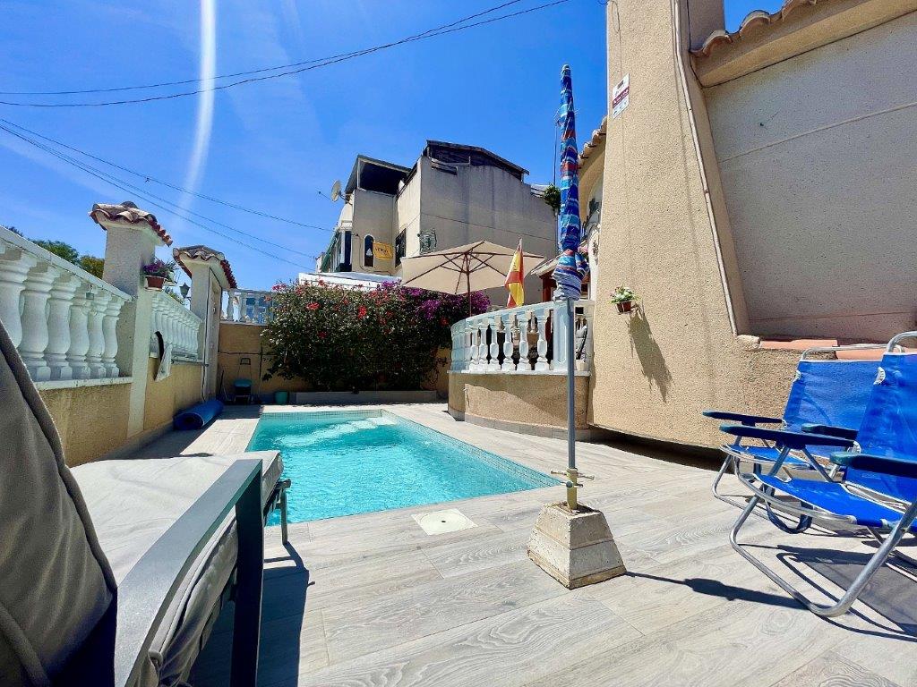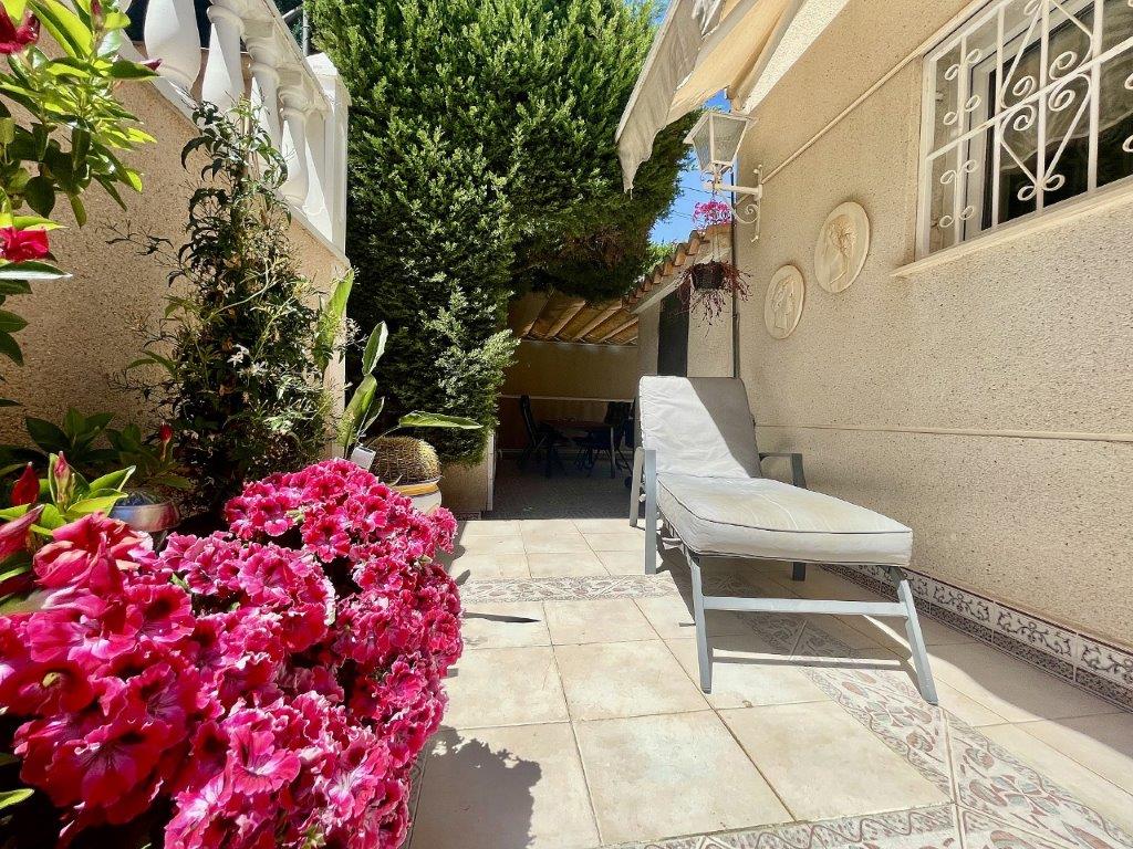 Vi presenterer stolt denne tomannsboligen i Lago Jardin som er en del av Los Balcones, med privat oppvarmet saltvannsbasseng (5×2 meter, bygget i 2019) og en lettstelt og koselig hage med god plass til soling og spiseplass.