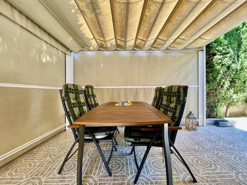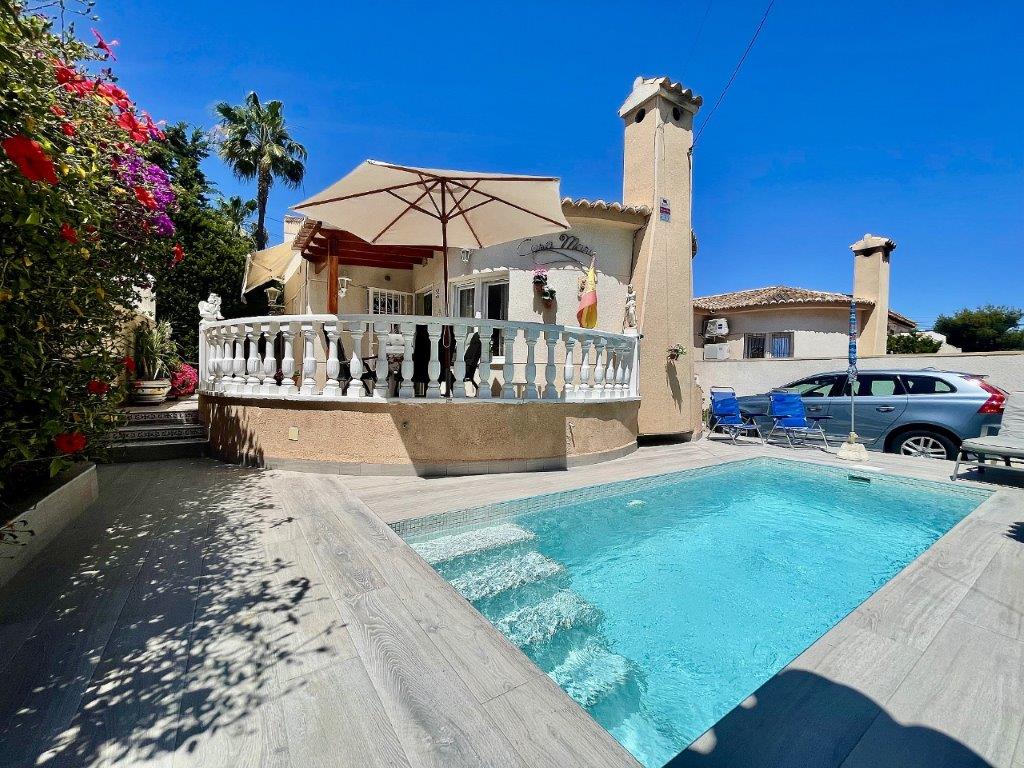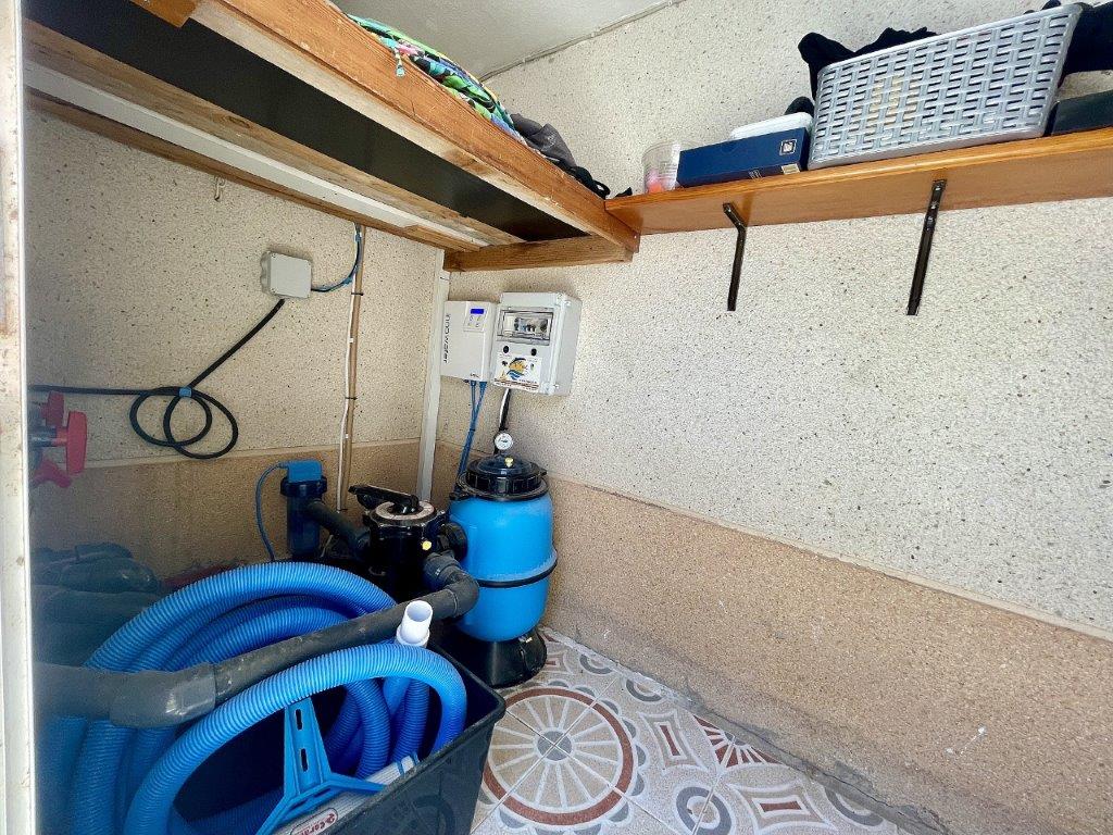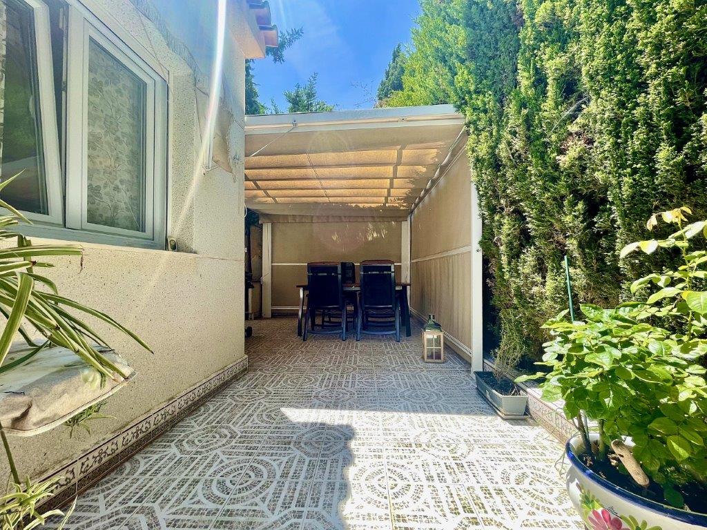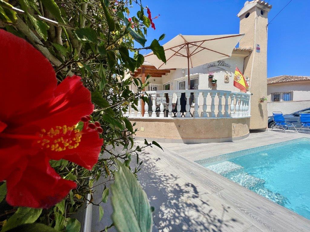Vi presenterer stolt denne tomannsboligen i Lago Jardin som er en del av Los Balcones, med privat oppvarmet saltvannsbasseng (5×2 meter, bygget i 2019) og en lettstelt og koselig hage med god plass til soling og spiseplass.