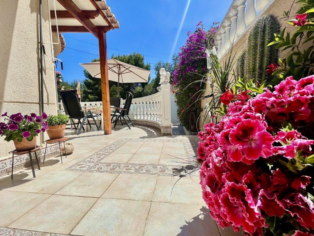 Via inngangen til eiendommen blir du ønsket velkommen av vakker bougainvillea og en følelse av ro. Her bor du i et trivelig område i en mindre enveiskjørt gate hvor kun beboere kjører og overfor ligger naturområder.